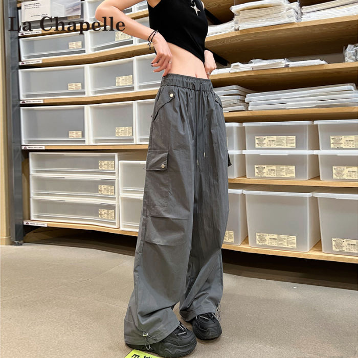 블랙 아메리칸 스타일 낙하산 공예 바지 여성 여름 2024 새로운 높은 허리 넓은 다리 봄과 가을 등산 바지 빠른 건조 스포츠 바지스토어 가기
