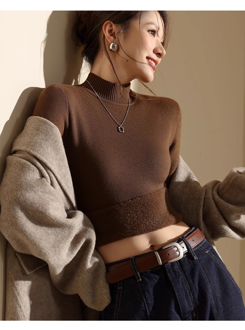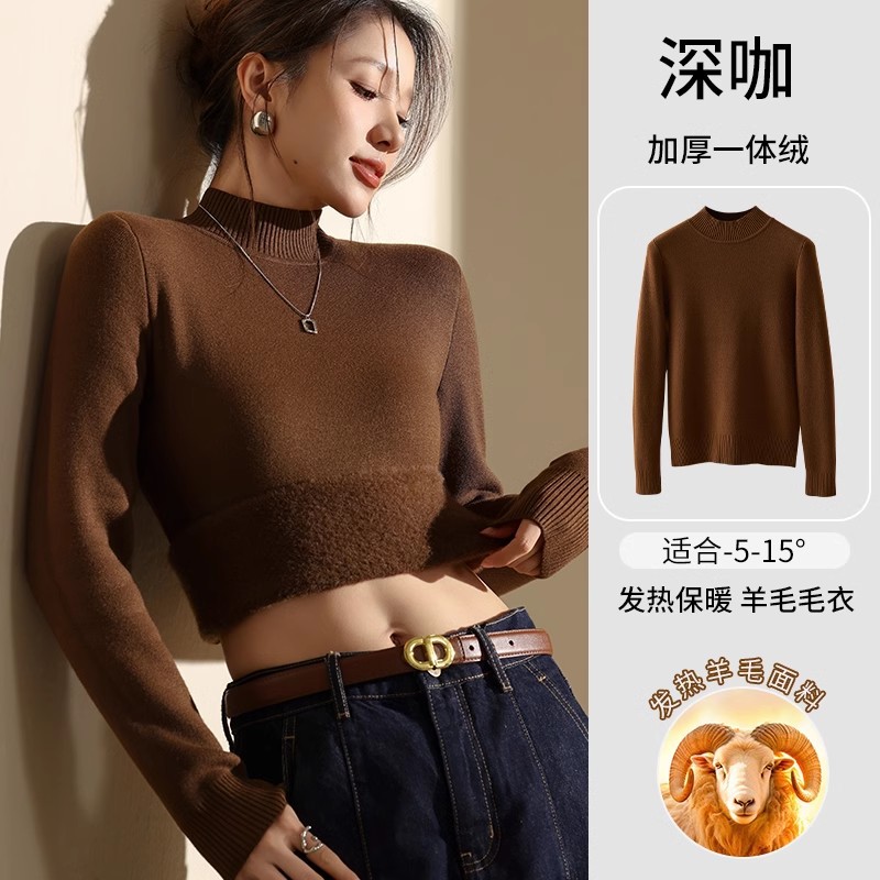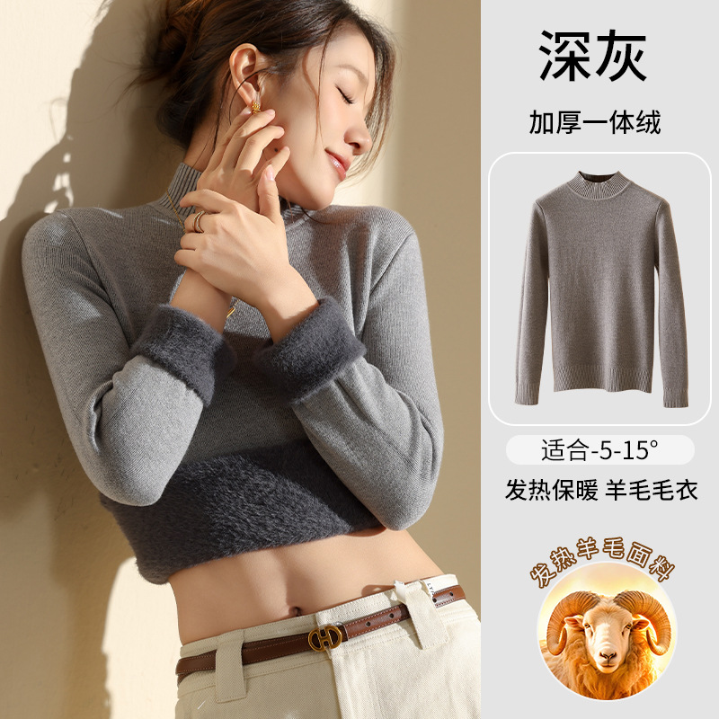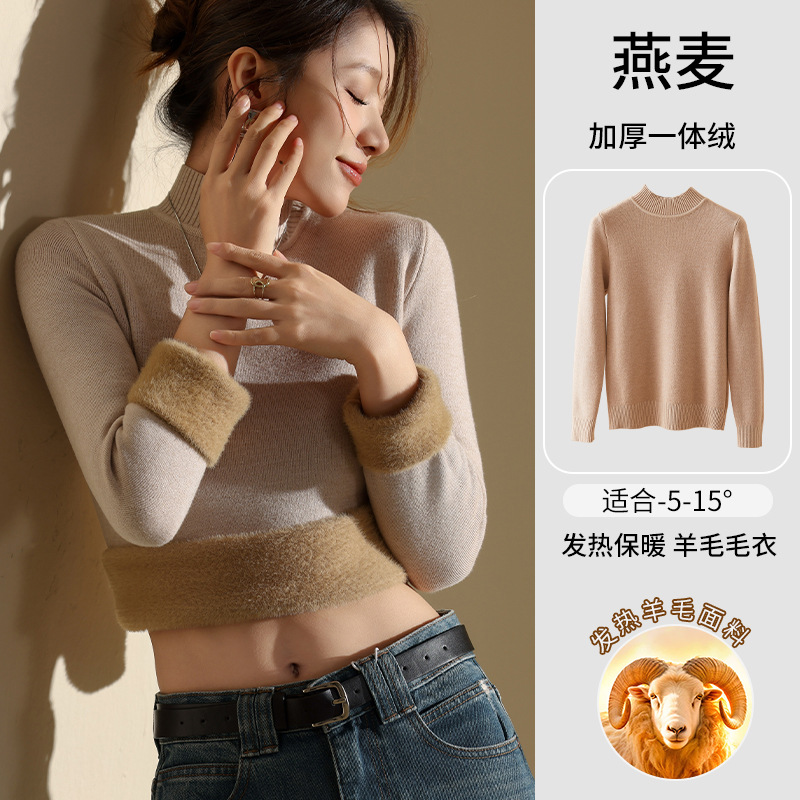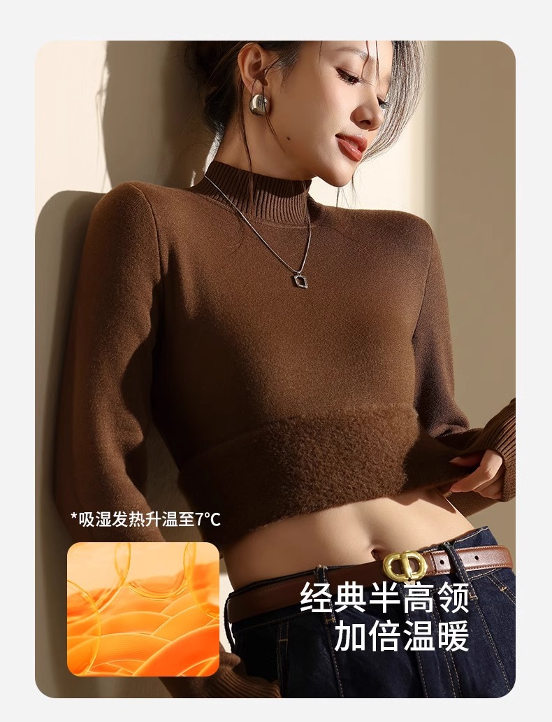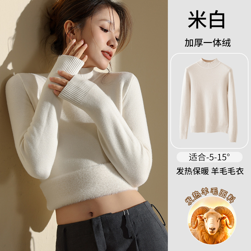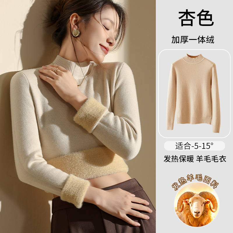 겨울 양털베이스 셔츠 스웨터 여성의 반 터틀넥 기모 두꺼운 내복 냉장 따뜻한 탑