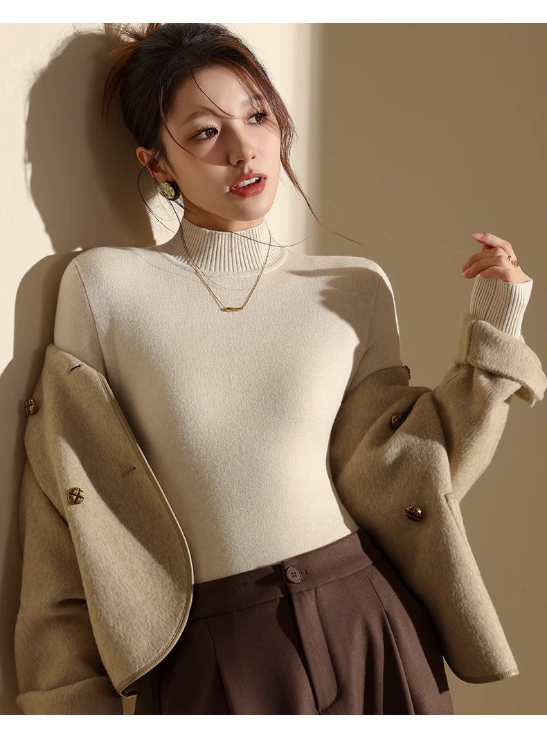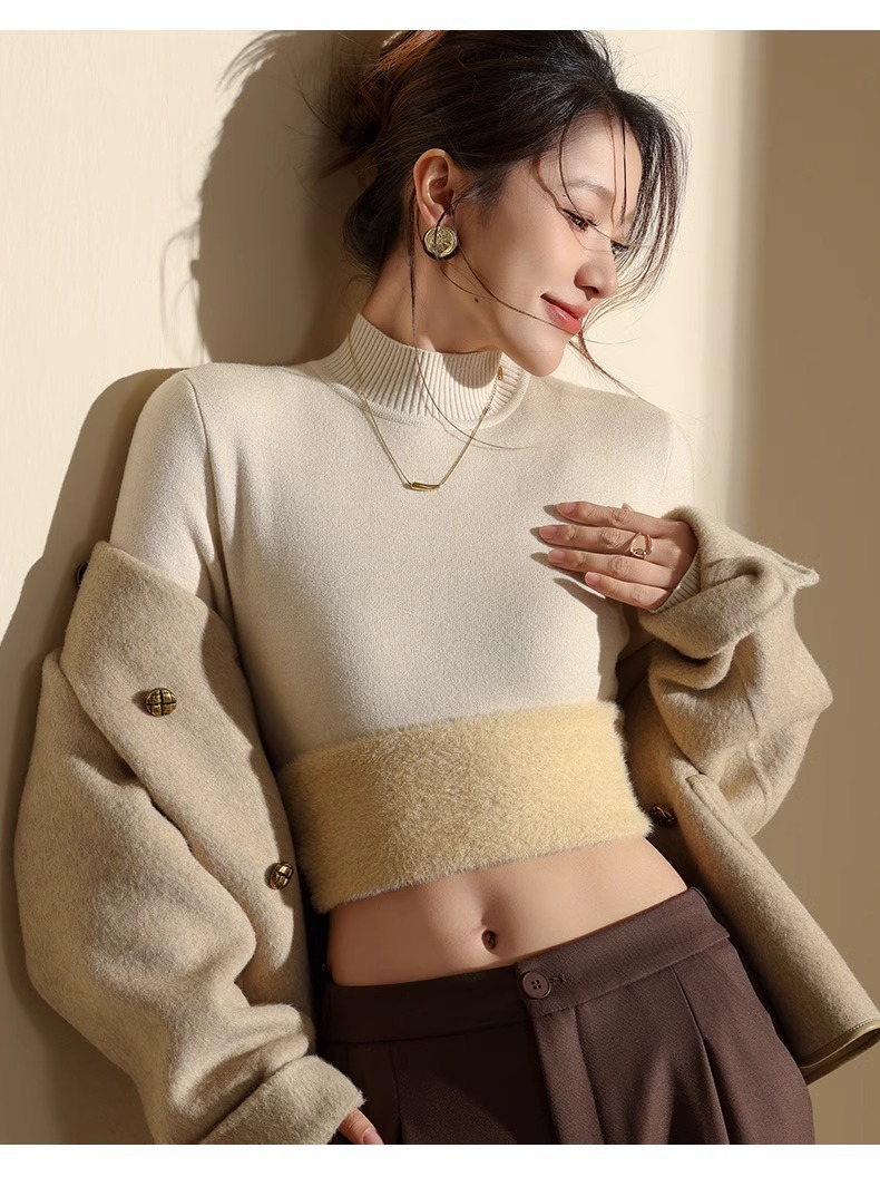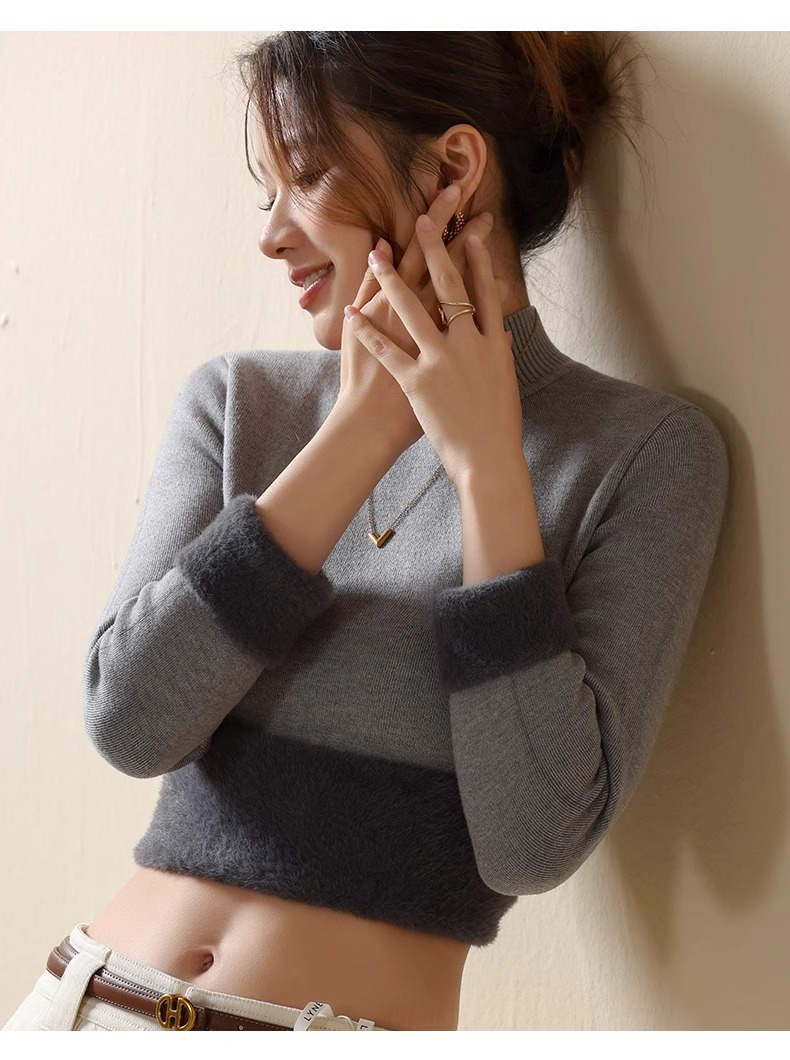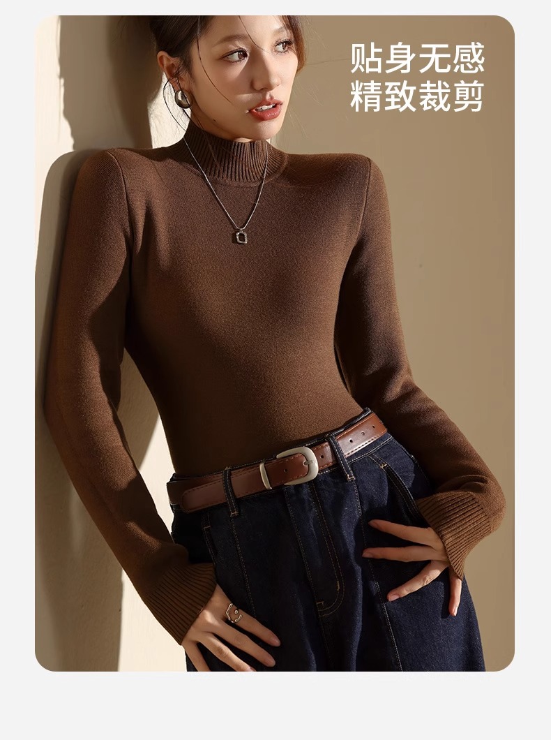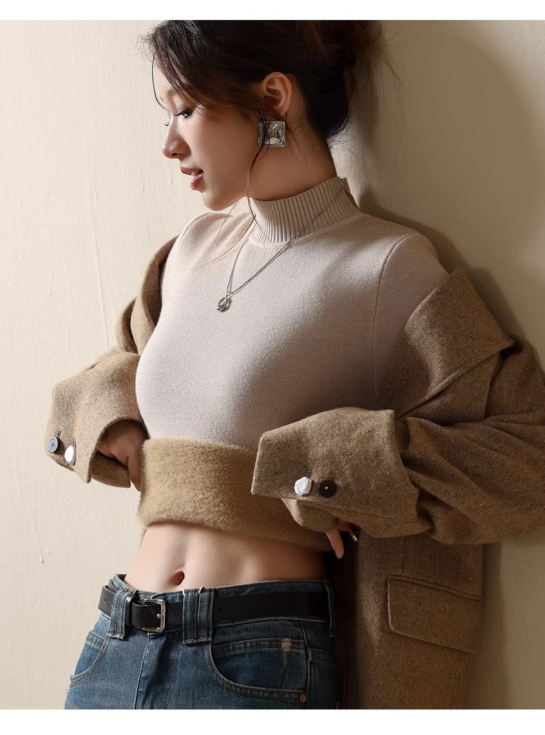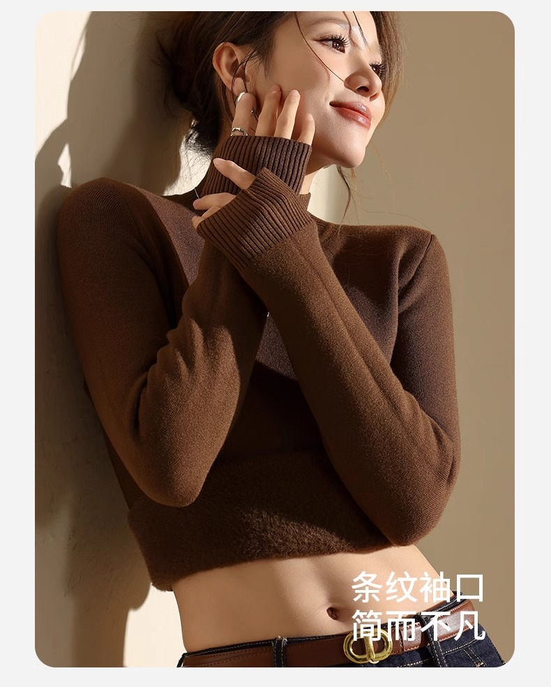 겨울 양털베이스 셔츠 스웨터 여성의 반 터틀넥 기모 두꺼운 내복 냉장 따뜻한 탑