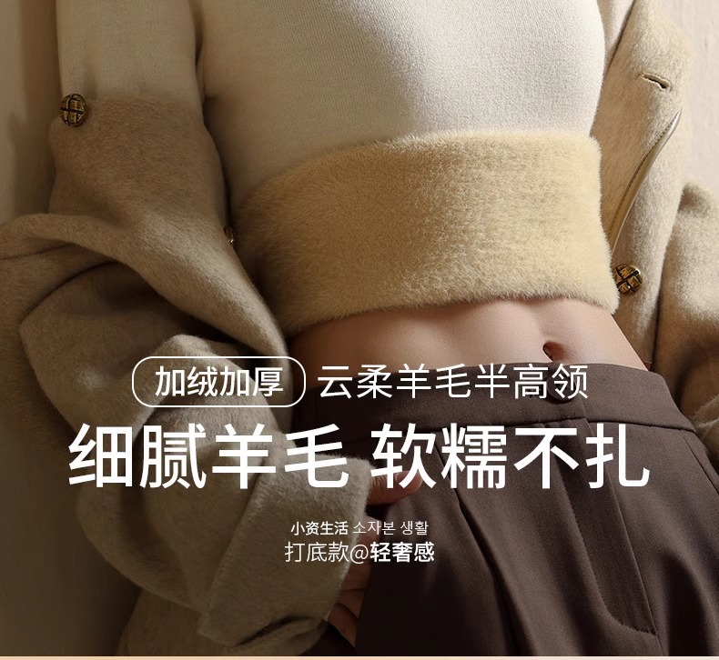 겨울 양털베이스 셔츠 스웨터 여성의 반 터틀넥 기모 두꺼운 내복 냉장 따뜻한 탑스토어 가기