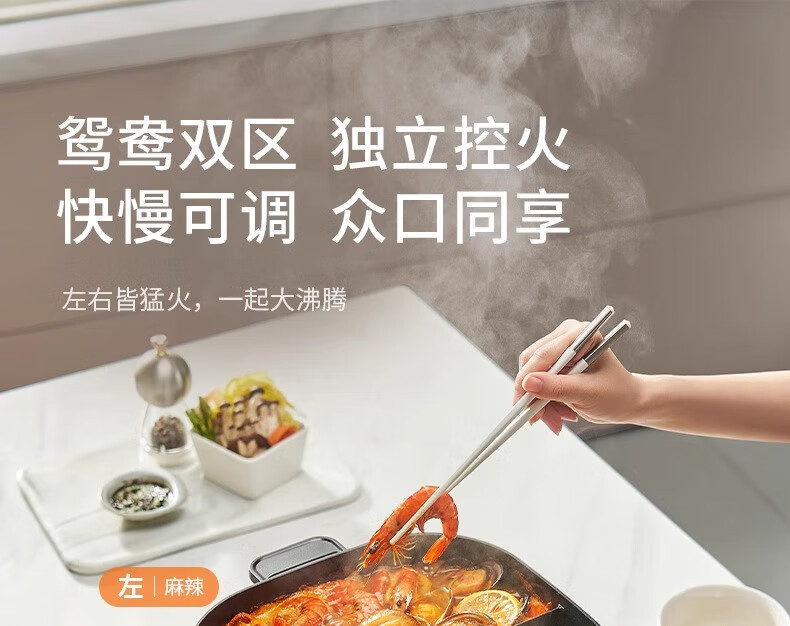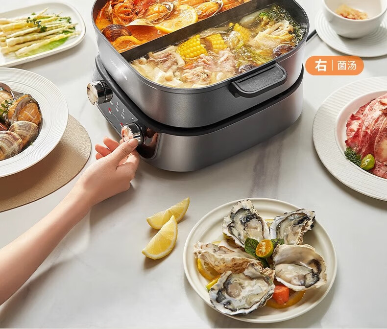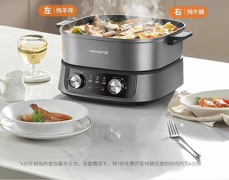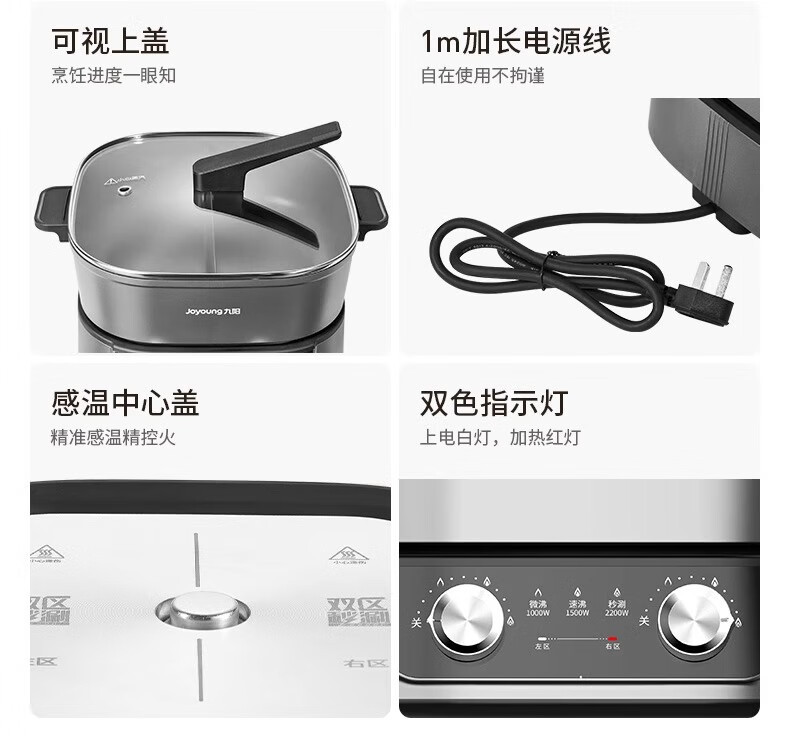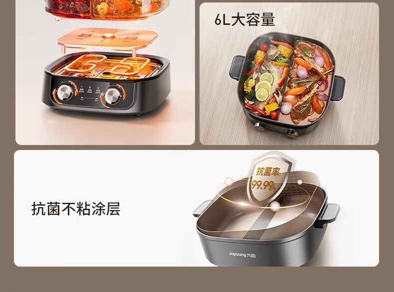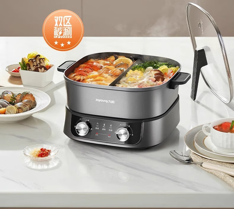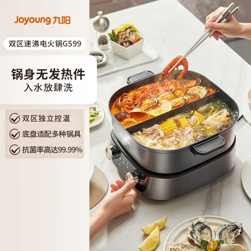 Jiuyang 전기 뜨거운 냄비 Yuanyang 냄비 가정용 다기능 튀김 및 볶음 별도의 제어 속도 끓는 전기 뜨거운 냄비 HG60-G599스토어 가기