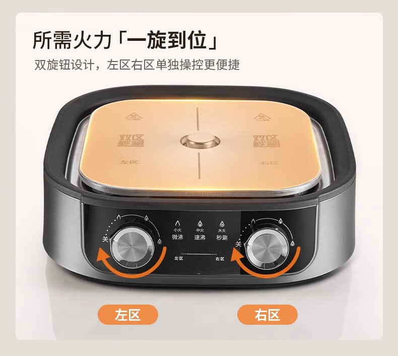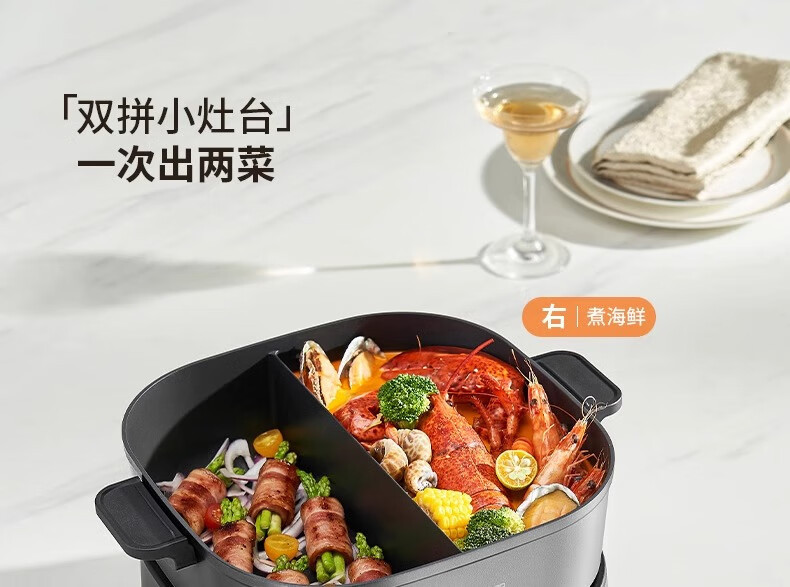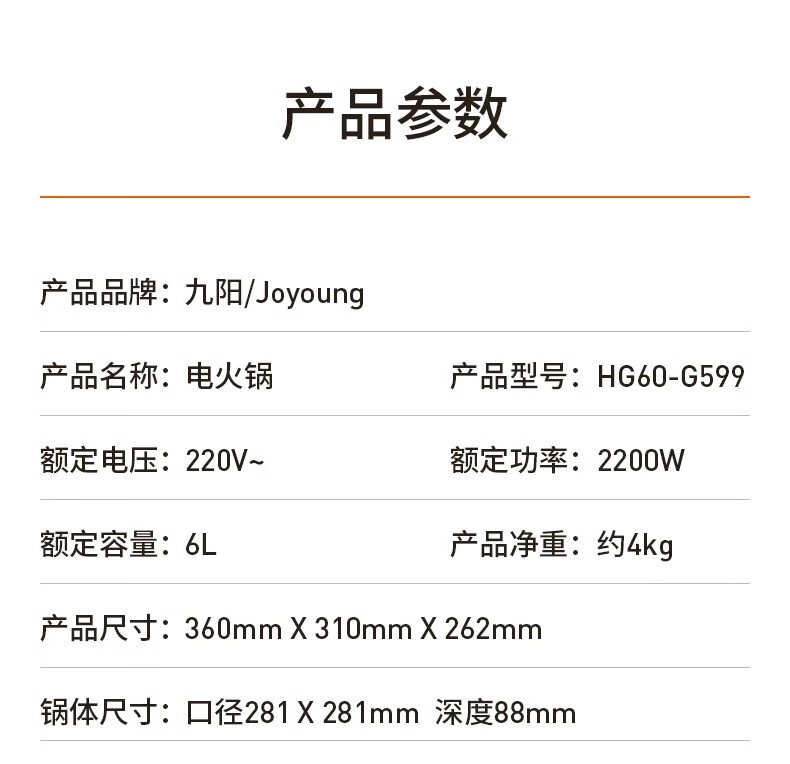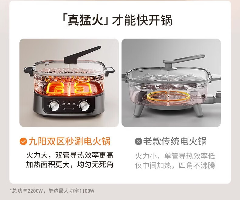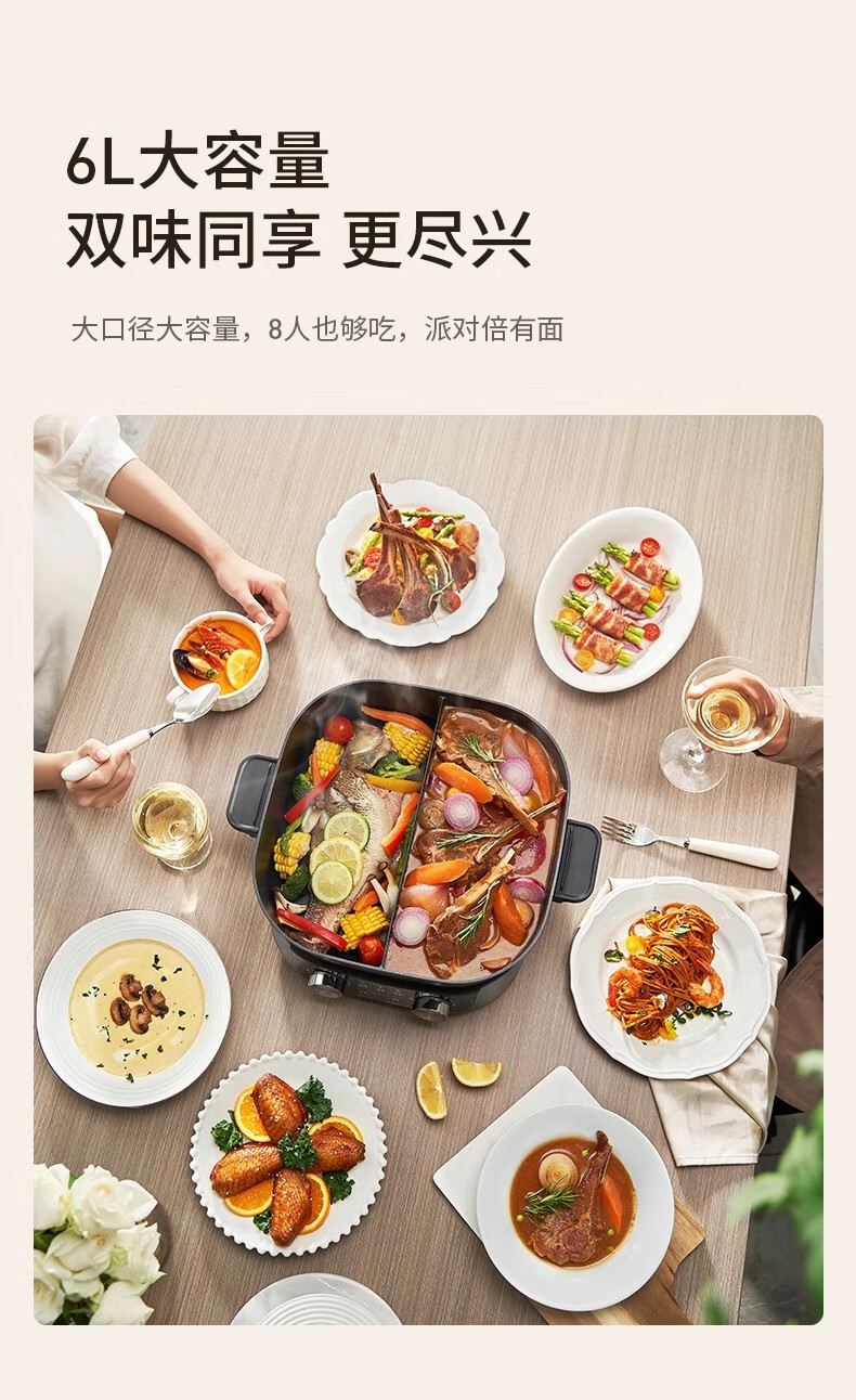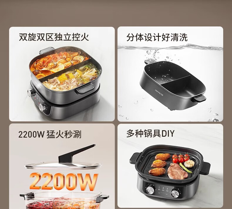 Jiuyang 전기 뜨거운 냄비 Yuanyang 냄비 가정용 다기능 튀김 및 볶음 별도의 제어 속도 끓는 전기 뜨거운 냄비 HG60-G599스토어 가기