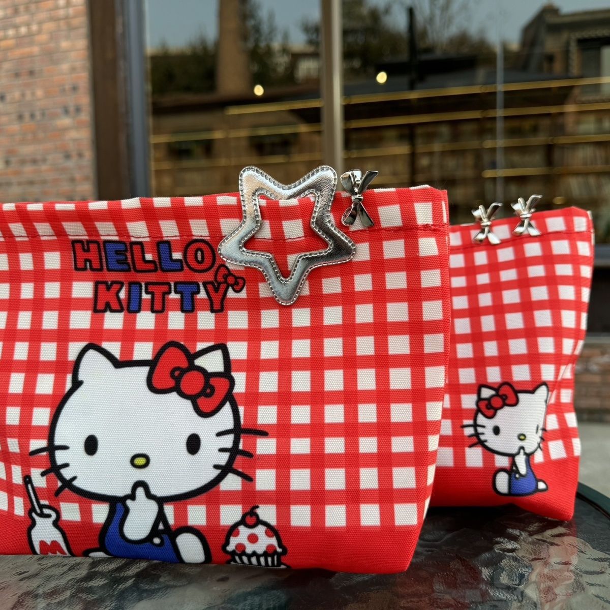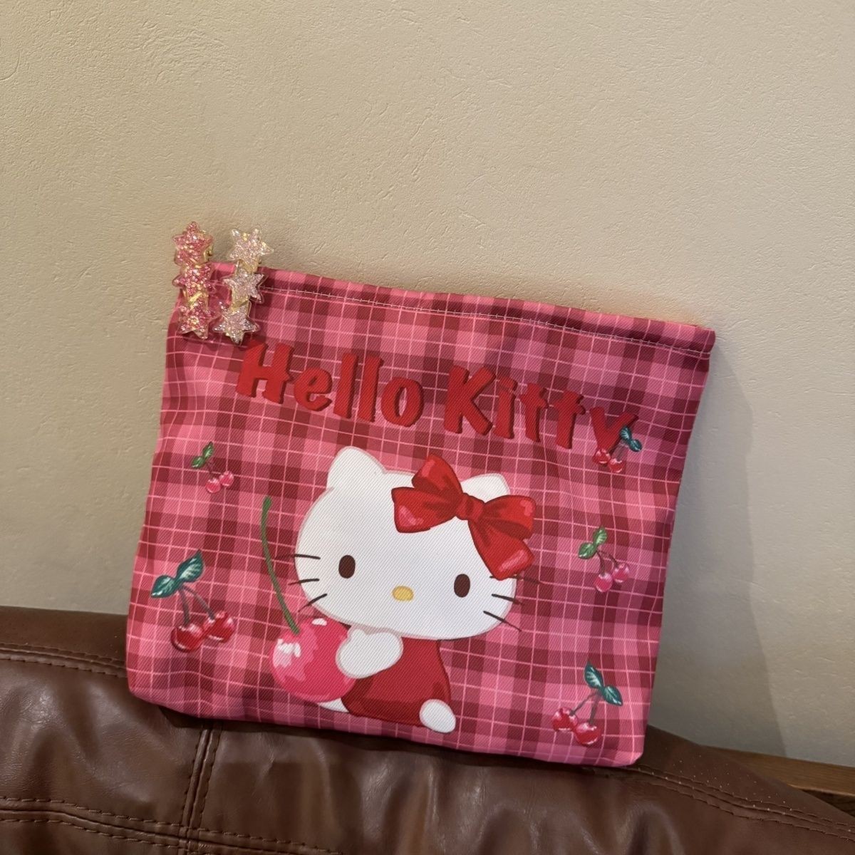 • 진한 빨간색 격자 무늬 헬로 키티