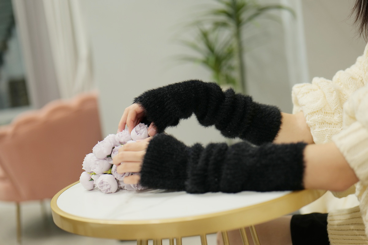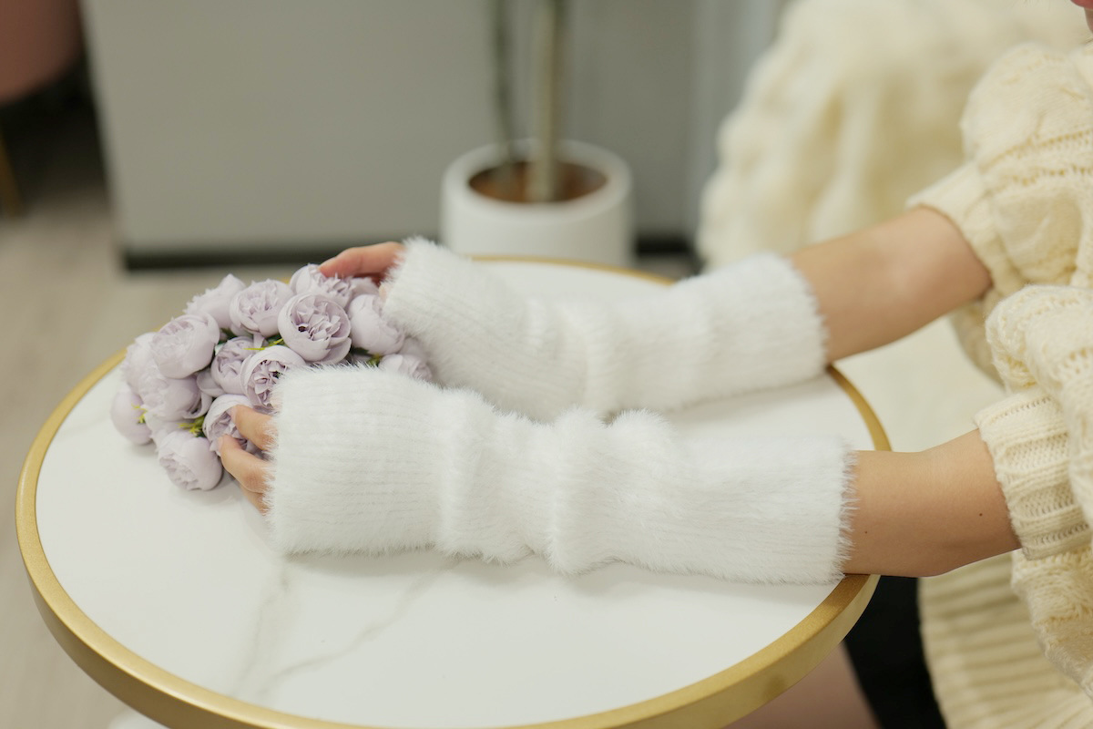 가을과 겨울 털 소매 인터넷 인기있는 사진 장갑 따뜻한 니트 벨벳 두꺼운 팔꿈치 방갑 팔 커버