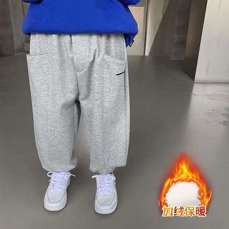 소년 바지 봄과 가을 2024 새로운 패션 스트리트 스포츠 바지 가을 및 겨울 기모 두꺼운 원피스 벨벳 패션
