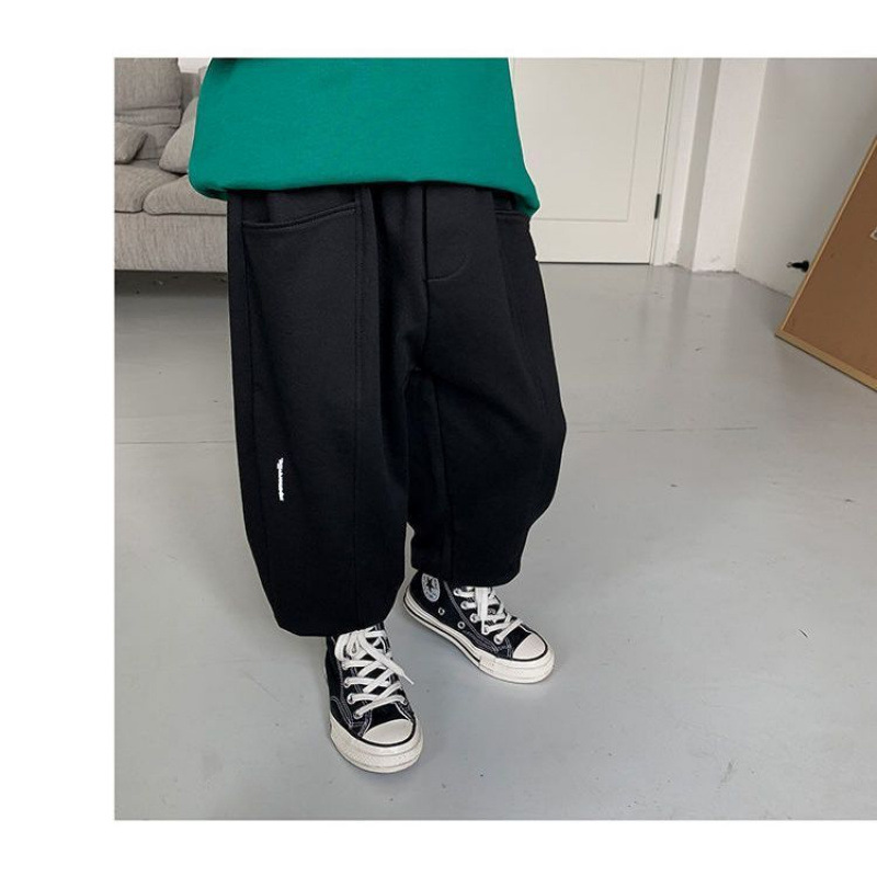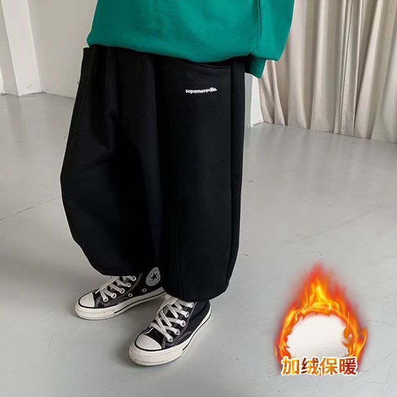 소년 바지 봄과 가을 2024 새로운 패션 스트리트 스포츠 바지 가을 및 겨울 기모 두꺼운 원피스 벨벳 패션스토어 가기