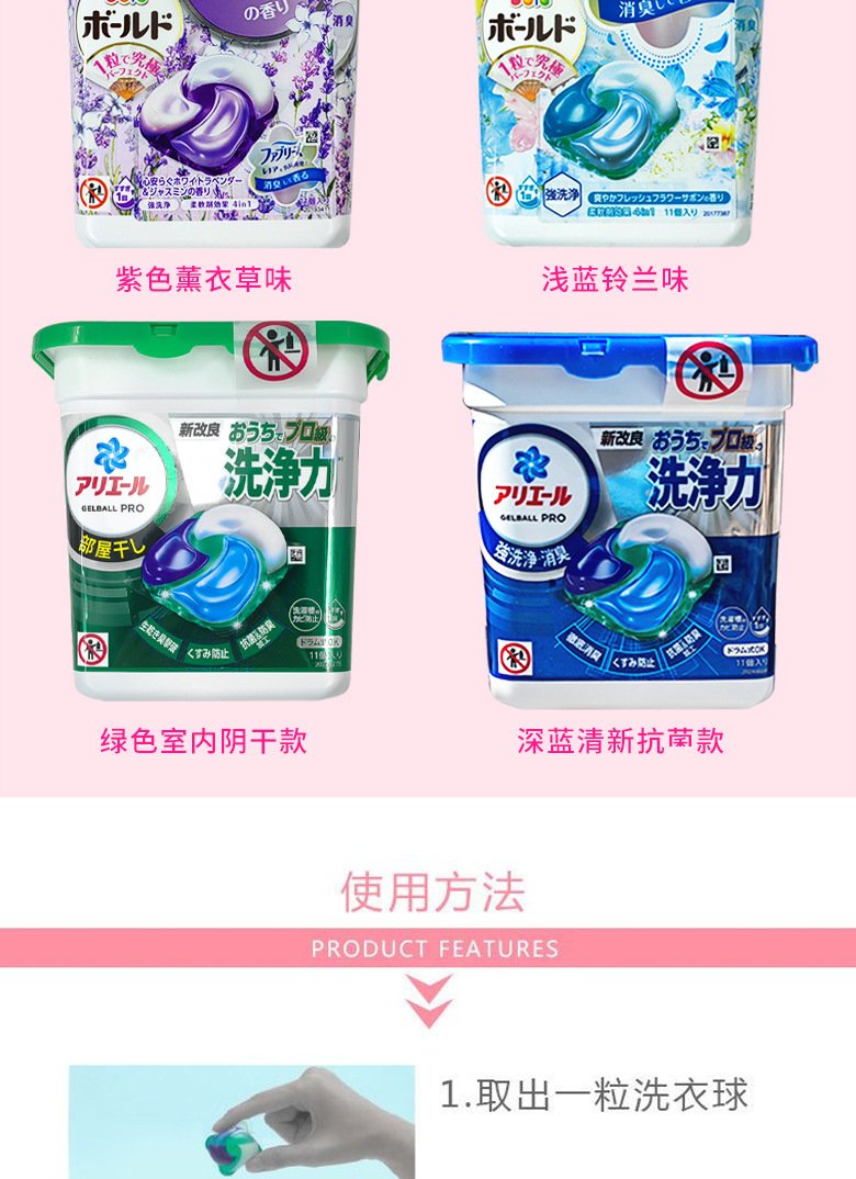 일본 P & G 수입 Procter & Gamble 4D 세탁 구슬 오염 제거 청결한 건조 향기 함유 연화제