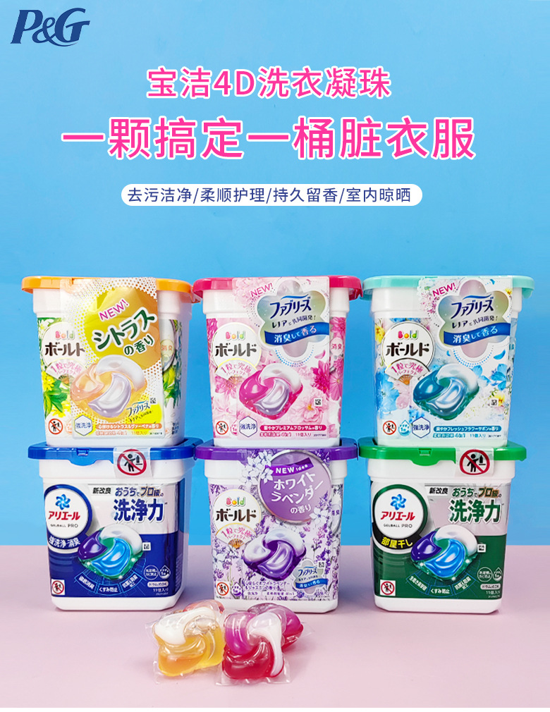 일본 P & G 수입 Procter & Gamble 4D 세탁 구슬 오염 제거 청결한 건조 향기 함유 연화제스토어 가기