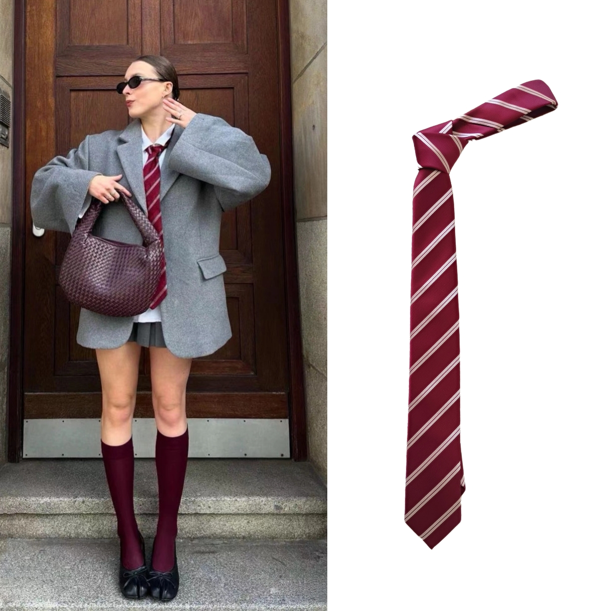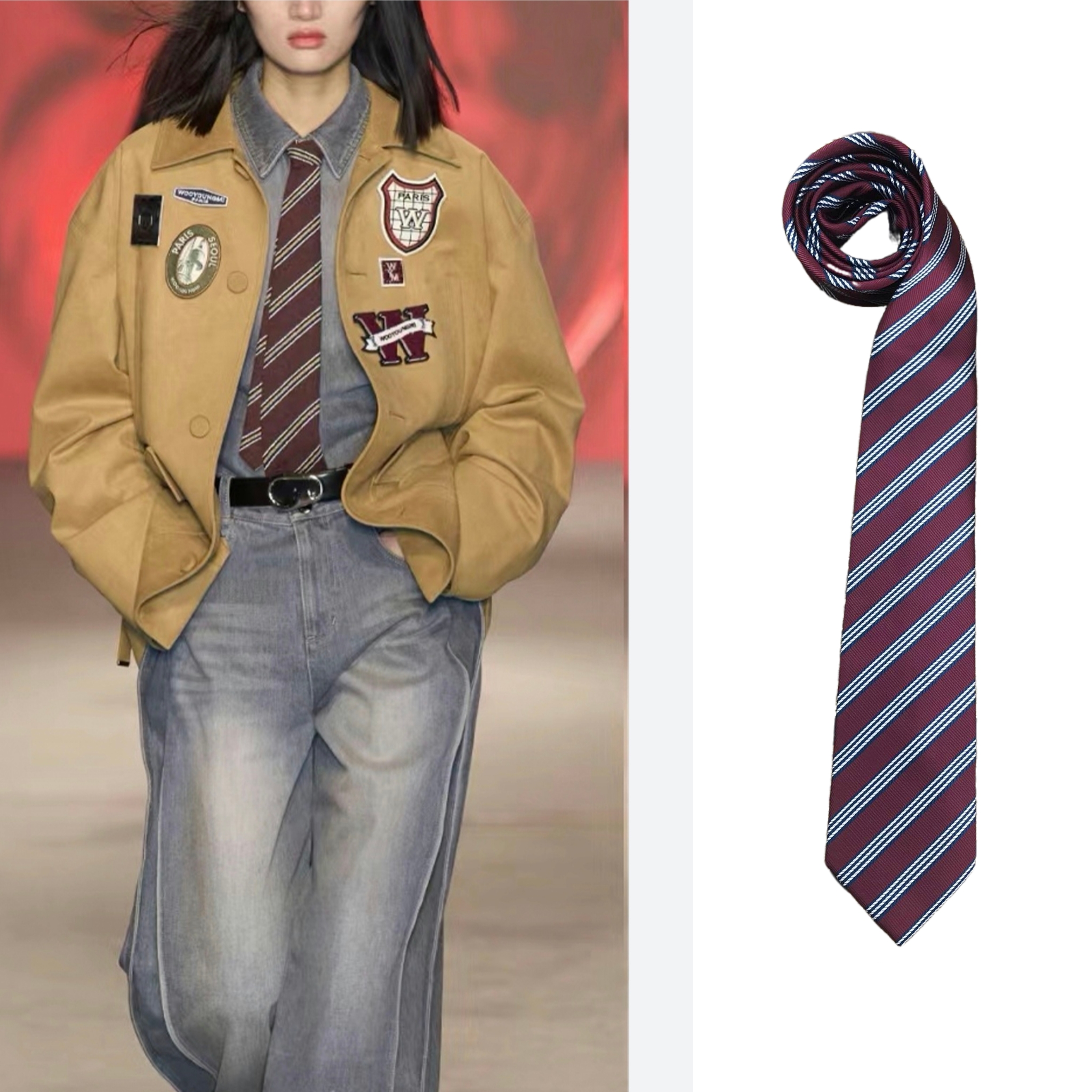 같은 스타일 빈티지 앙고라 레드 스트라이프 타이 핸드 타이 표시스토어 가기