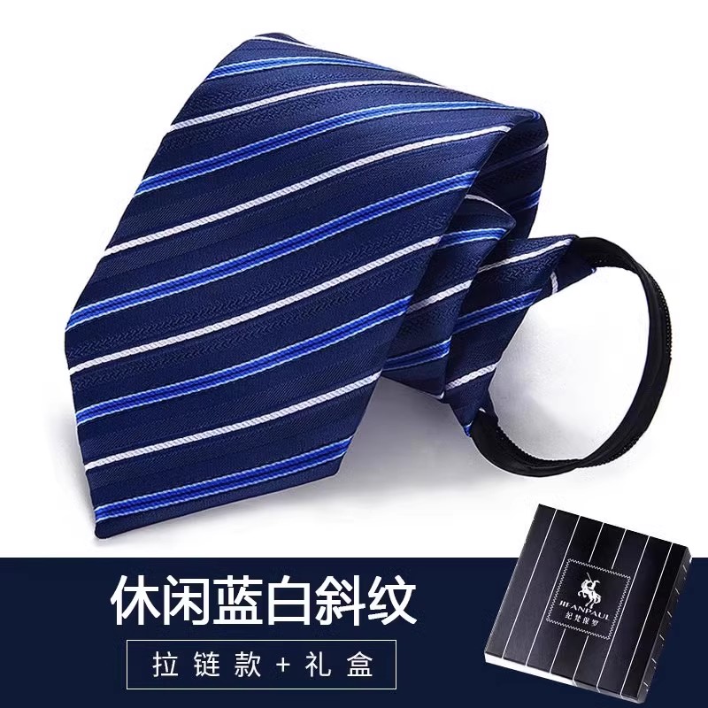 • 캐주얼한 파란색과 흰색 대각선 줄무늬 8cm 지퍼 스타일 [지퍼 없음]