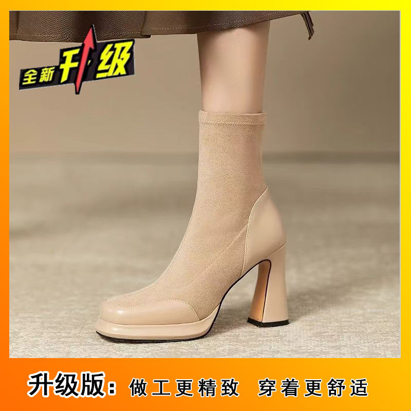 바느질 방수 플랫폼 스트레치 얇은 부츠 부드러운 올매치 하이힐 발목 부츠 두꺼운 힐 미드 힐 패션 부츠 여성의 2024 새로운 도착