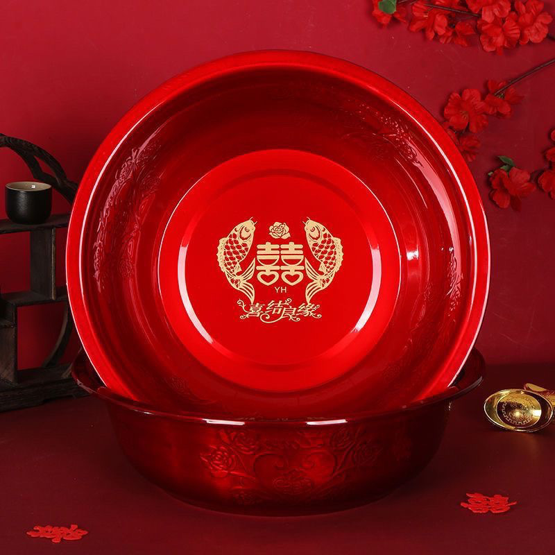 스테인레스 스틸 해피 캐릭터 분지 웨딩 레드 여성의 신부 함께 두꺼운 얼굴 세척 인쇄 희미한 웨딩 용품 세트