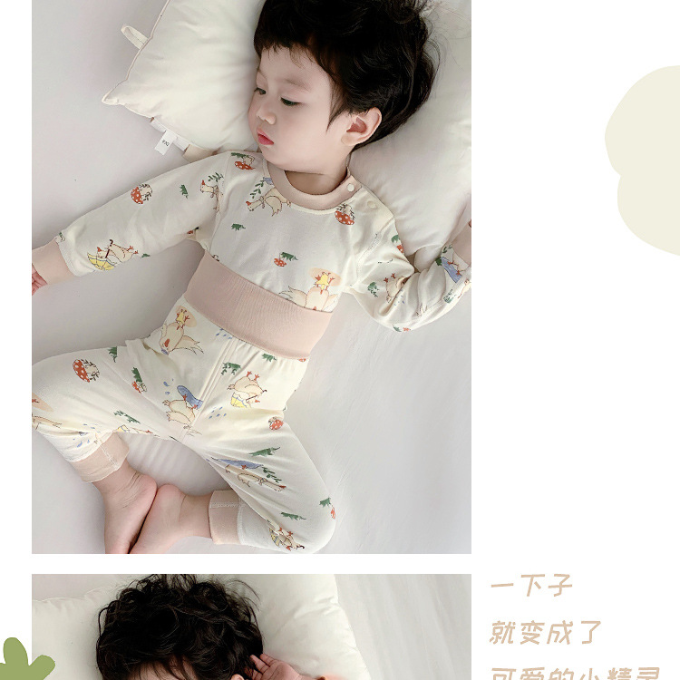 아기의 가을과 겨울 가을 옷과 바지 맞는 기본 잠옷 투피스 세트 아기의 높은 허리 배꼽 보호 속옷 분할 세트스토어 가기