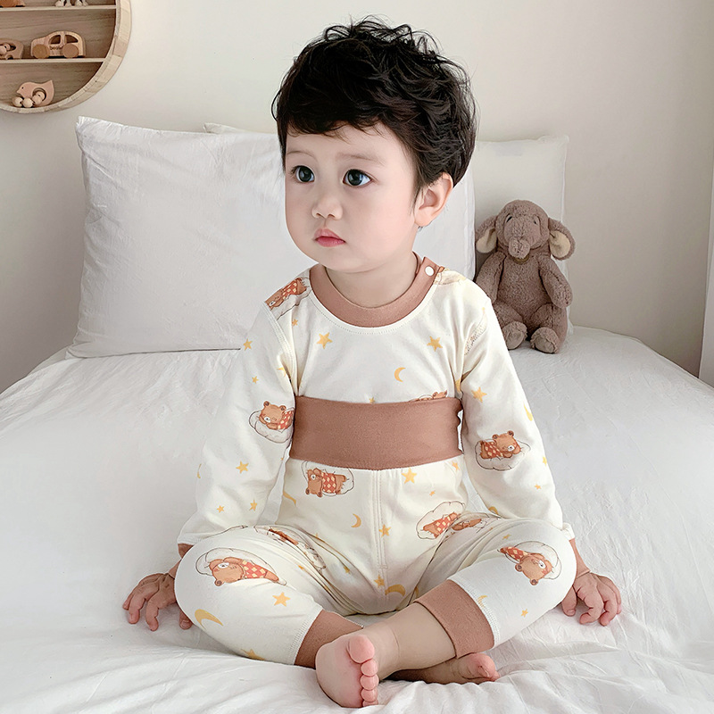 아기의 가을과 겨울 가을 옷과 바지 맞는 기본 잠옷 투피스 세트 아기의 높은 허리 배꼽 보호 속옷 분할 세트