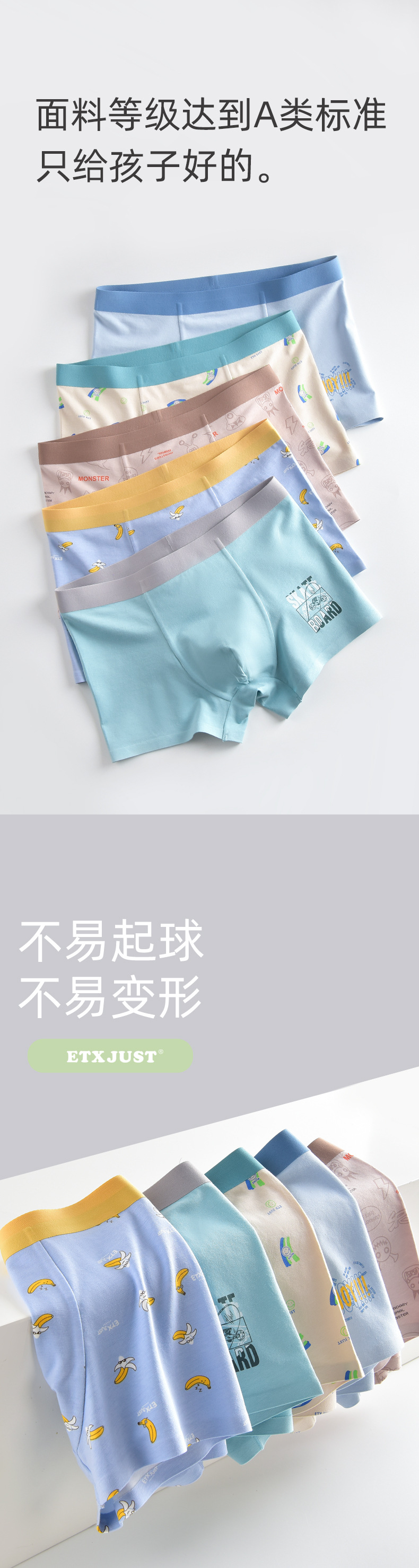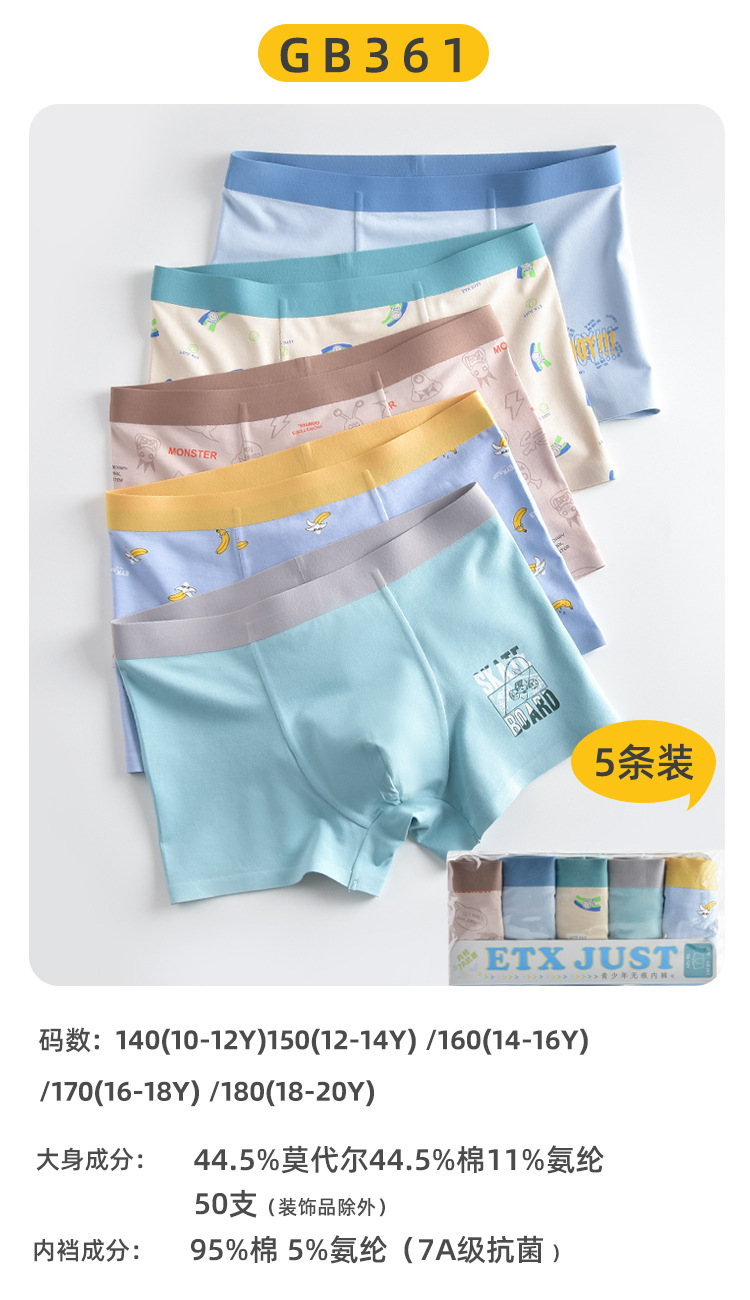 ETX JUST 어린이 속옷 클래스 A 모달 코튼 보이즈 트레이스 속옷 10 대 학생 플랫 속옷 대형스토어 가기