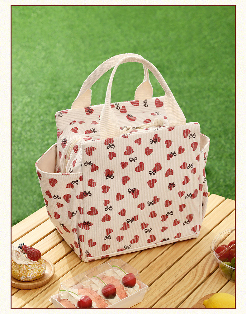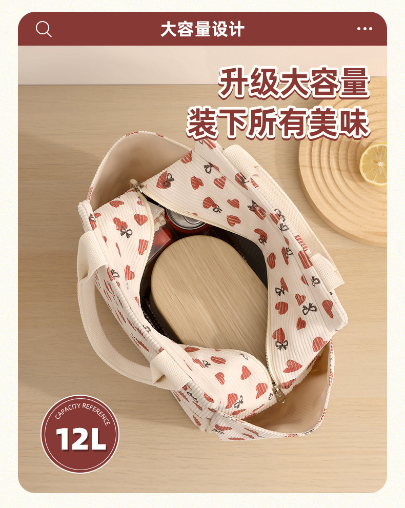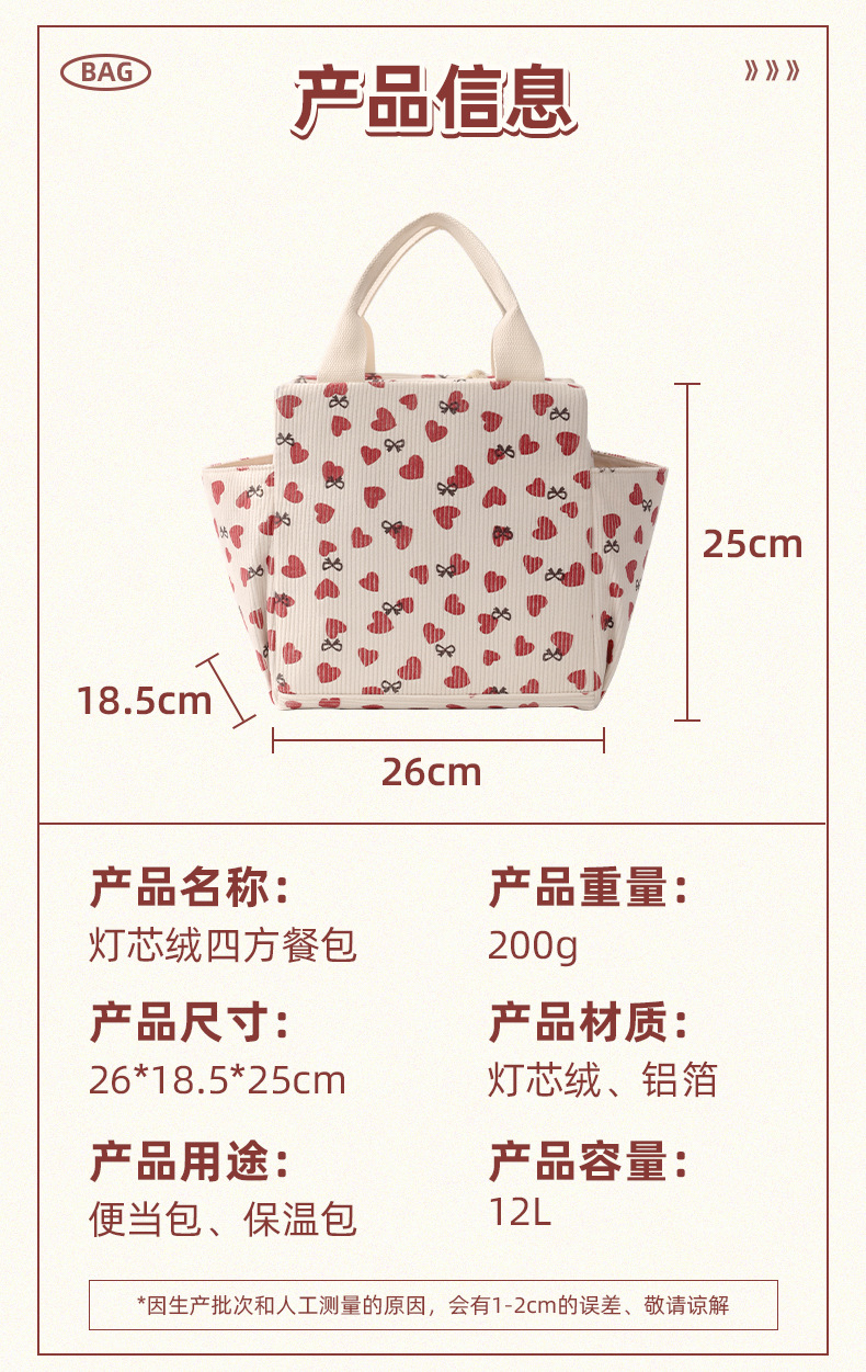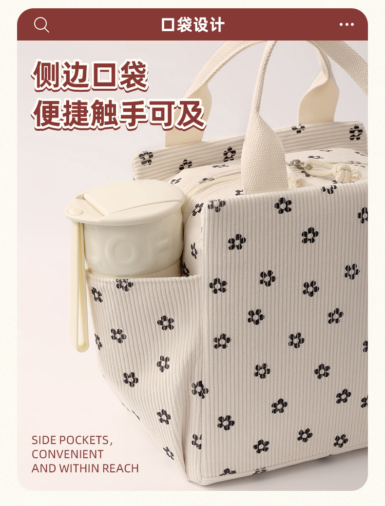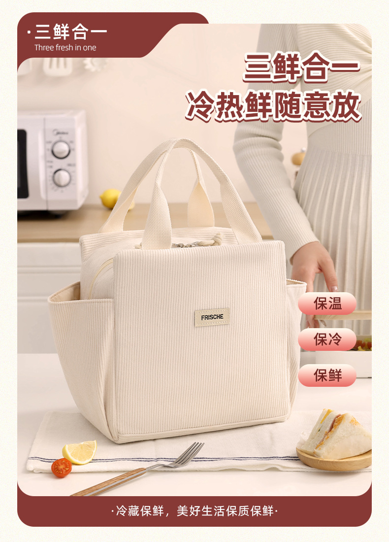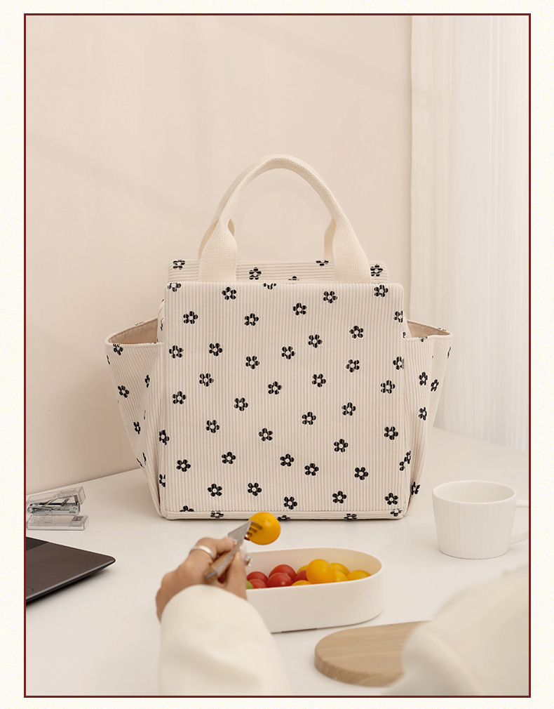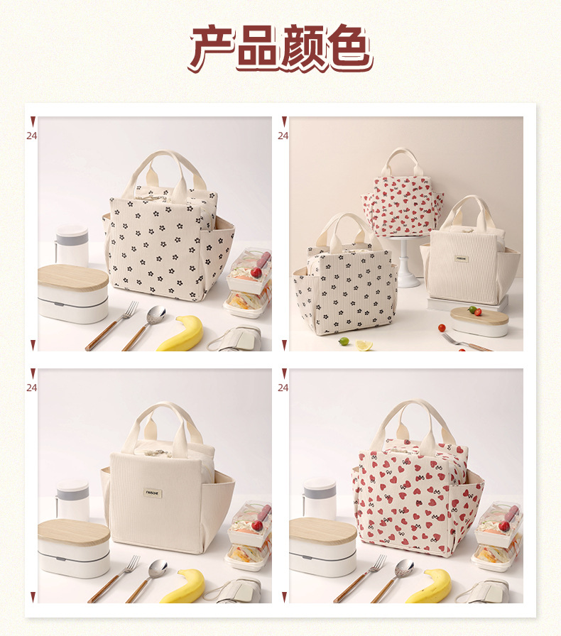 Runhui New Corduroy Square Meal Bag 휴대용 절연 아이스 백 작업 점심 가방 학생 도시락 가방