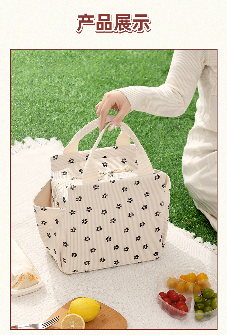 Runhui New Corduroy Square Meal Bag 휴대용 절연 아이스 백 작업 점심 가방 학생 도시락 가방스토어 가기