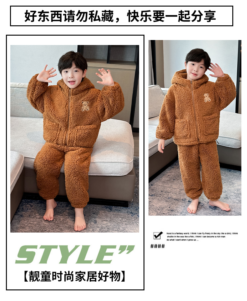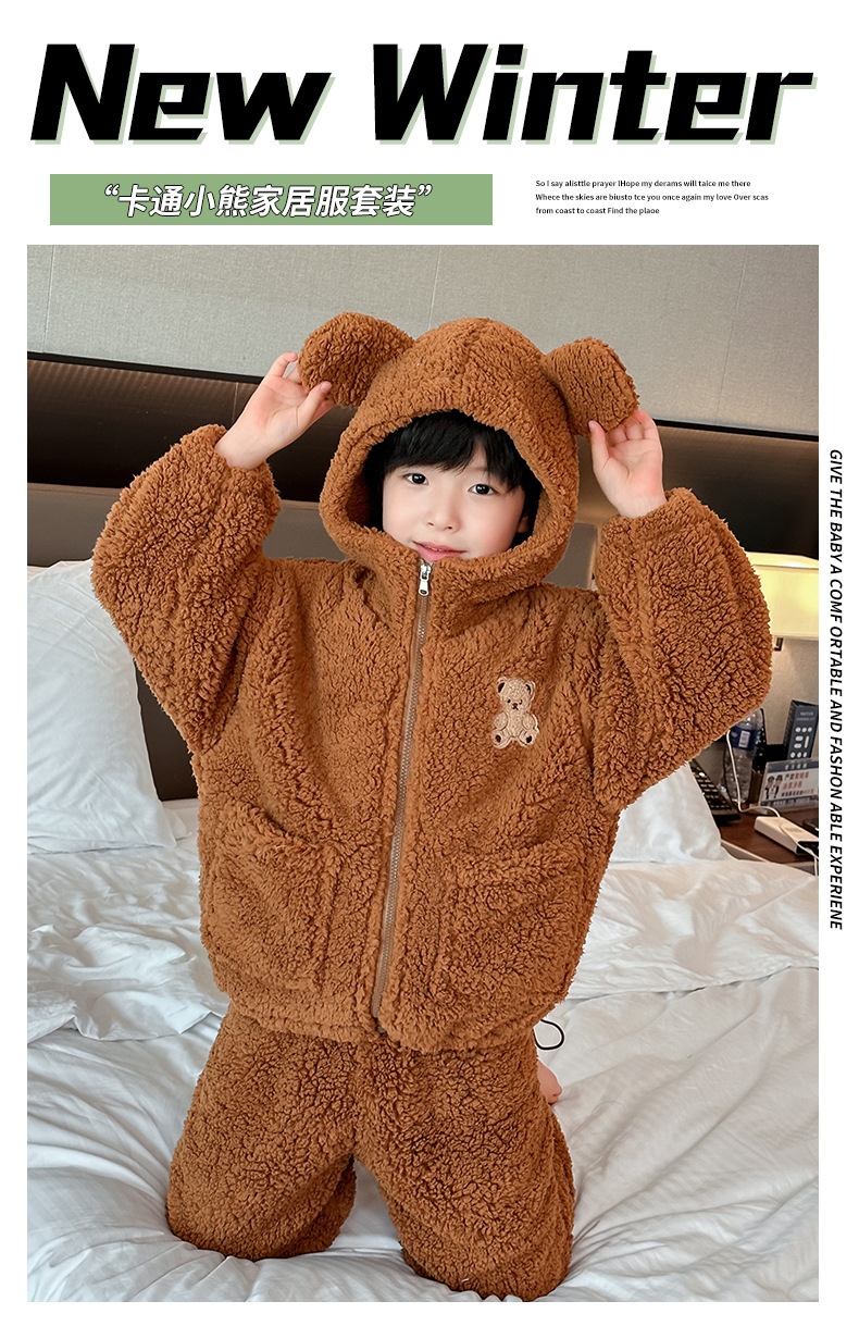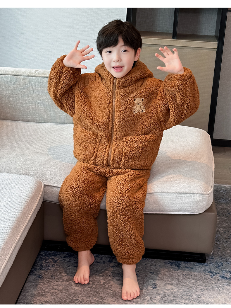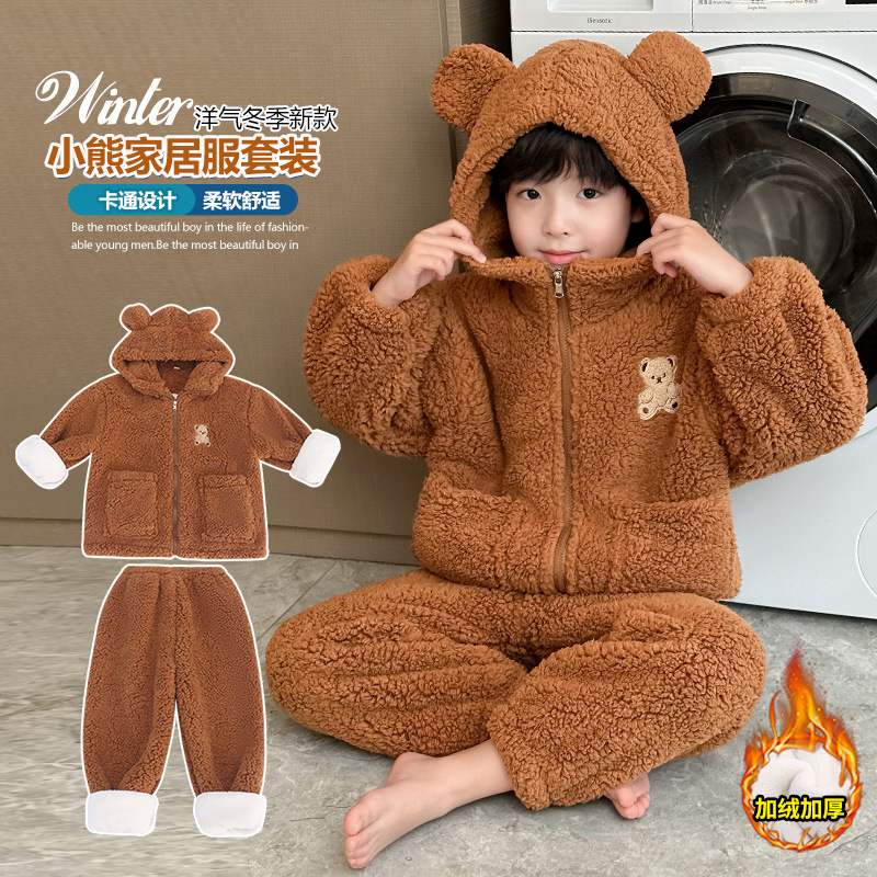 소년 잠옷 2024 새로운 가을과 겨울 소년 플란넬 기모 어린이 겨울 산호 양털 홈 옷스토어 가기