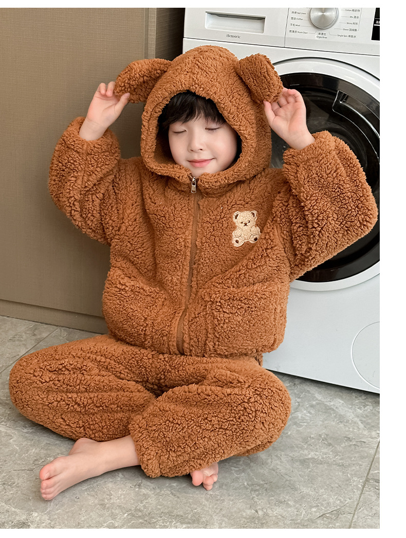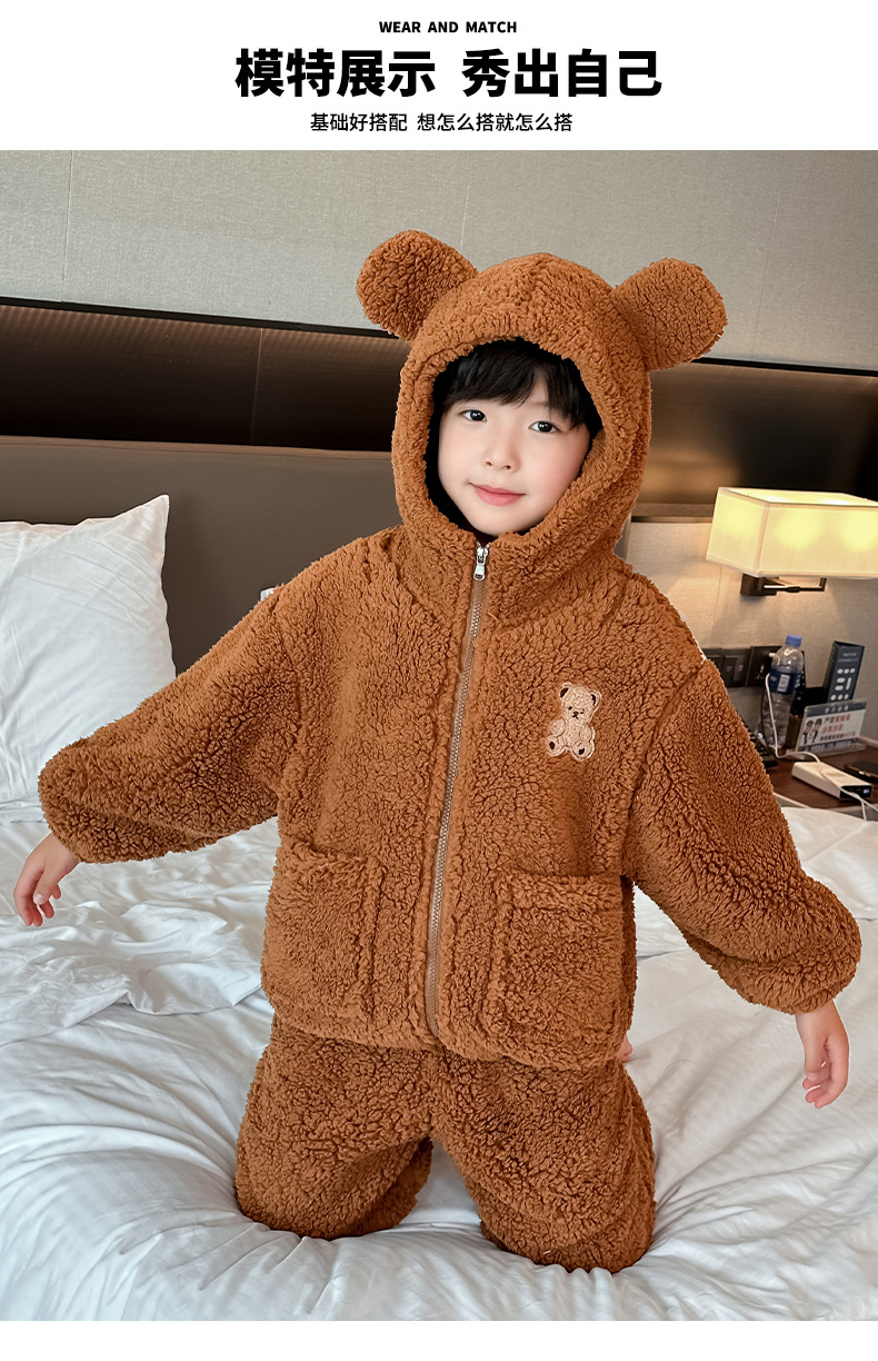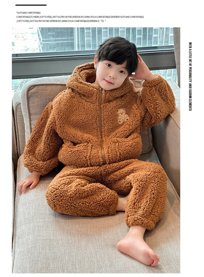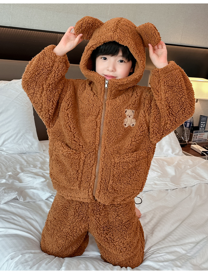 소년 잠옷 2024 새로운 가을과 겨울 소년 플란넬 기모 어린이 겨울 산호 양털 홈 옷스토어 가기