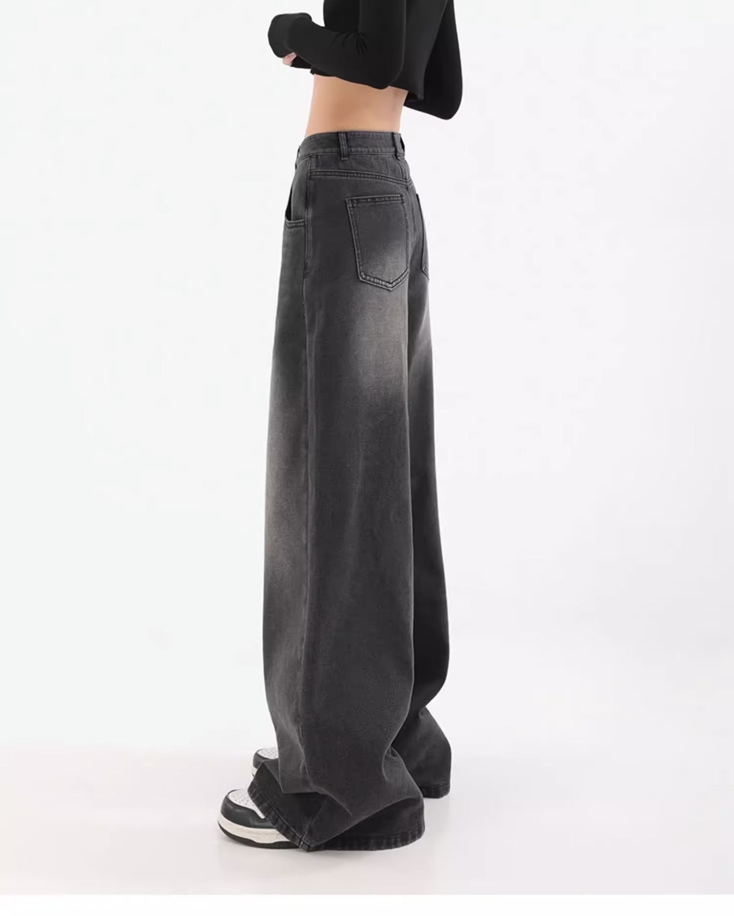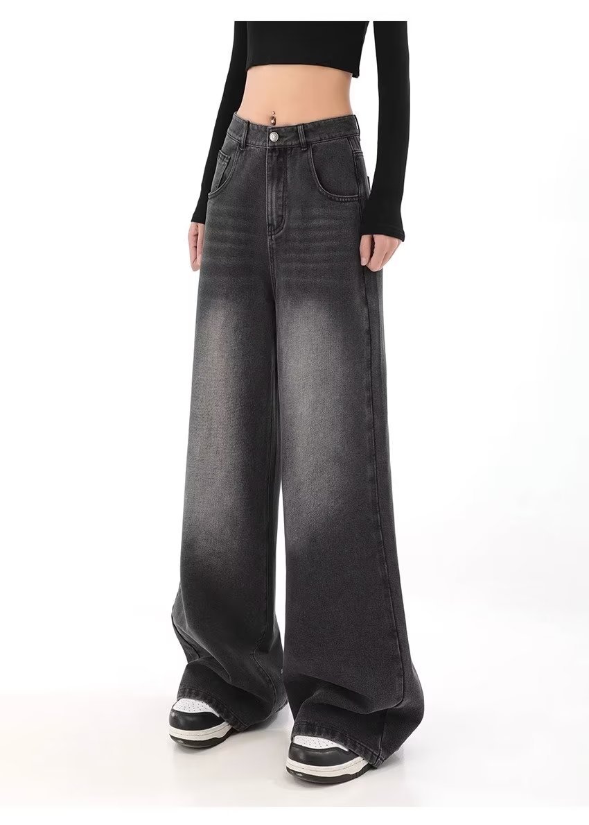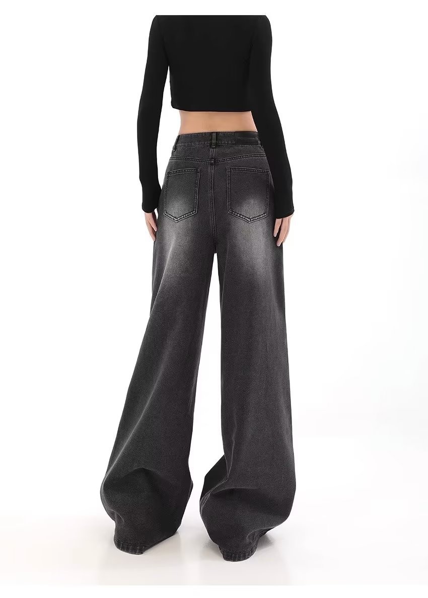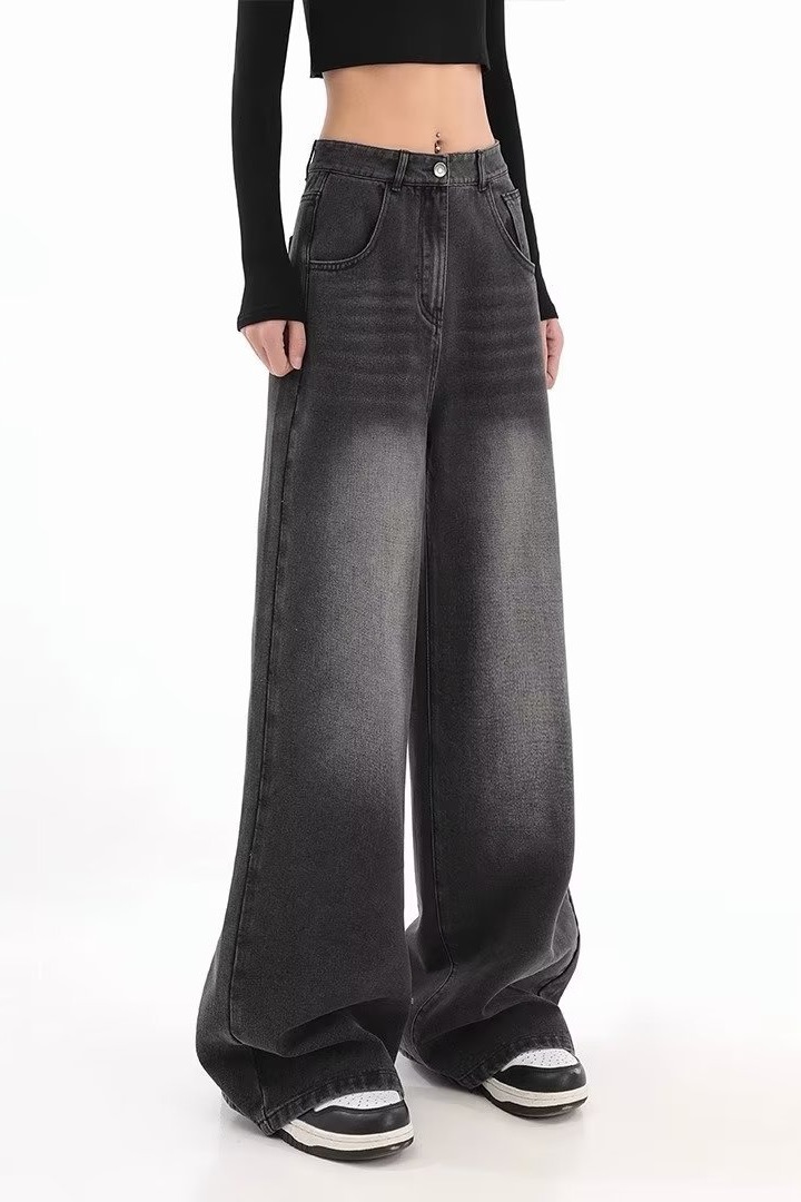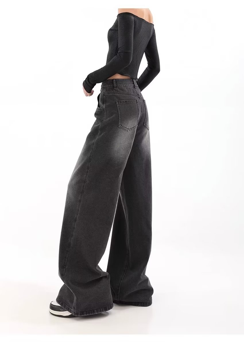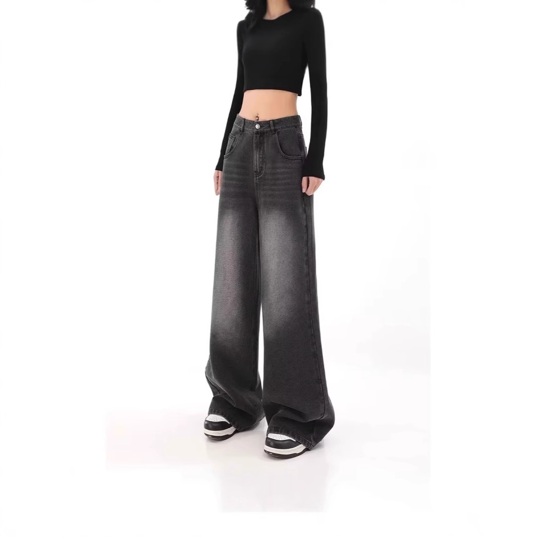 아메리칸 스타일 레트로 와이드 레그 청바지 여성 가을 새로운 하이 웨이스트 슬리밍 올 매치 힙합 커버 느슨한 스트레이트 바지
