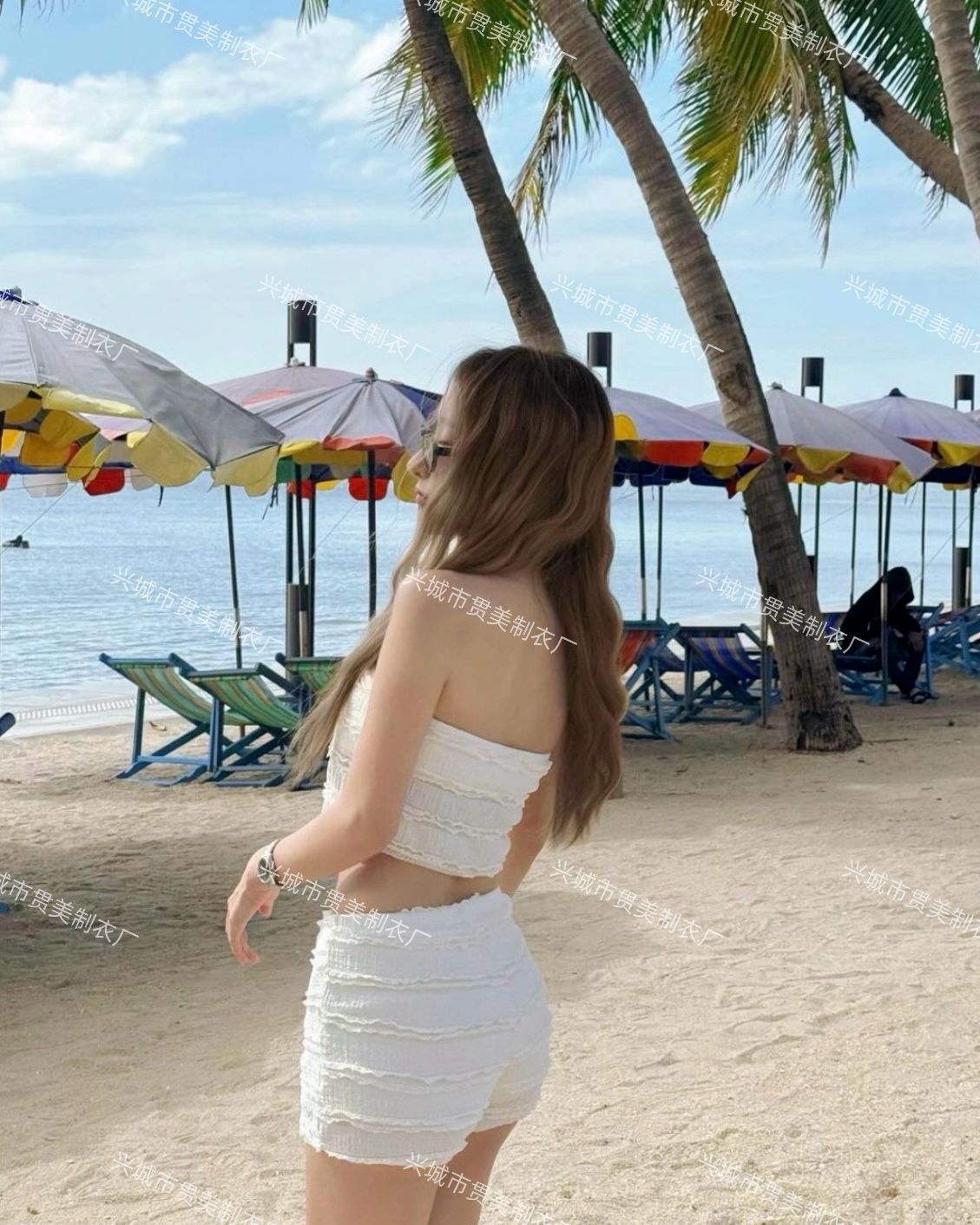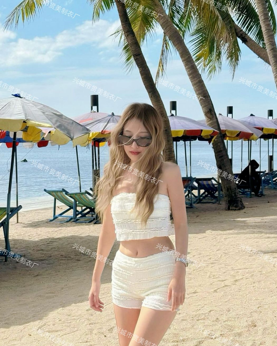 4 가지 색상] 새로운 한국 스타일 스트랩리스 비키니 섹시한 스파이스 소녀 해변 휴가 분할 복서 여성용 수영복