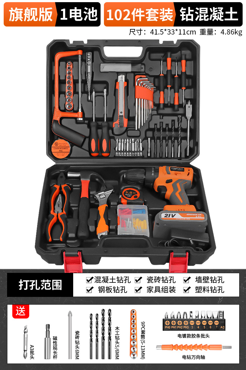 • [21V 브러시리스 임팩트 플래그십 버전] 배터리 1개/킹 세트/드릴 콘크리트