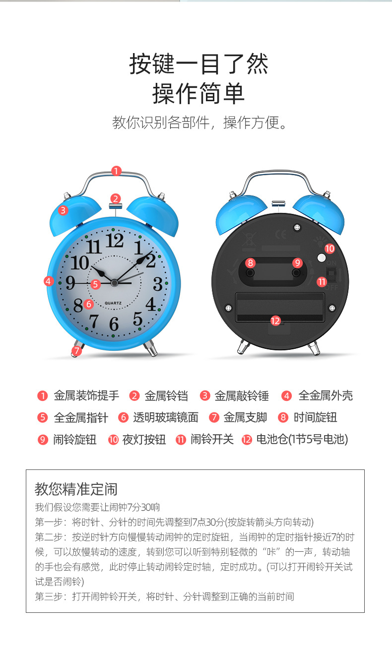 • 메탈 바디/스몰 블루 [무음 이동 시간] [벨소리] [무료 배터리
