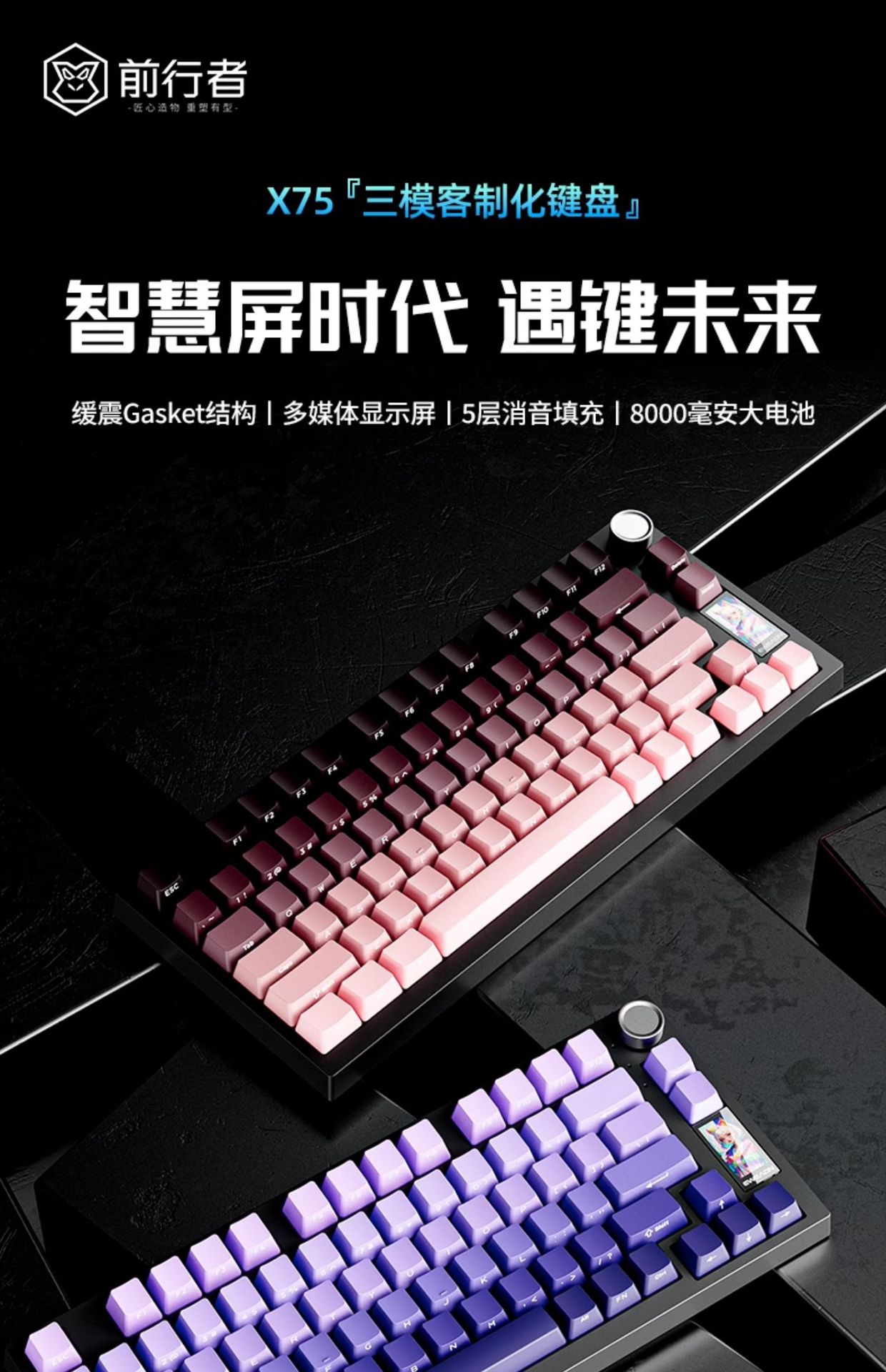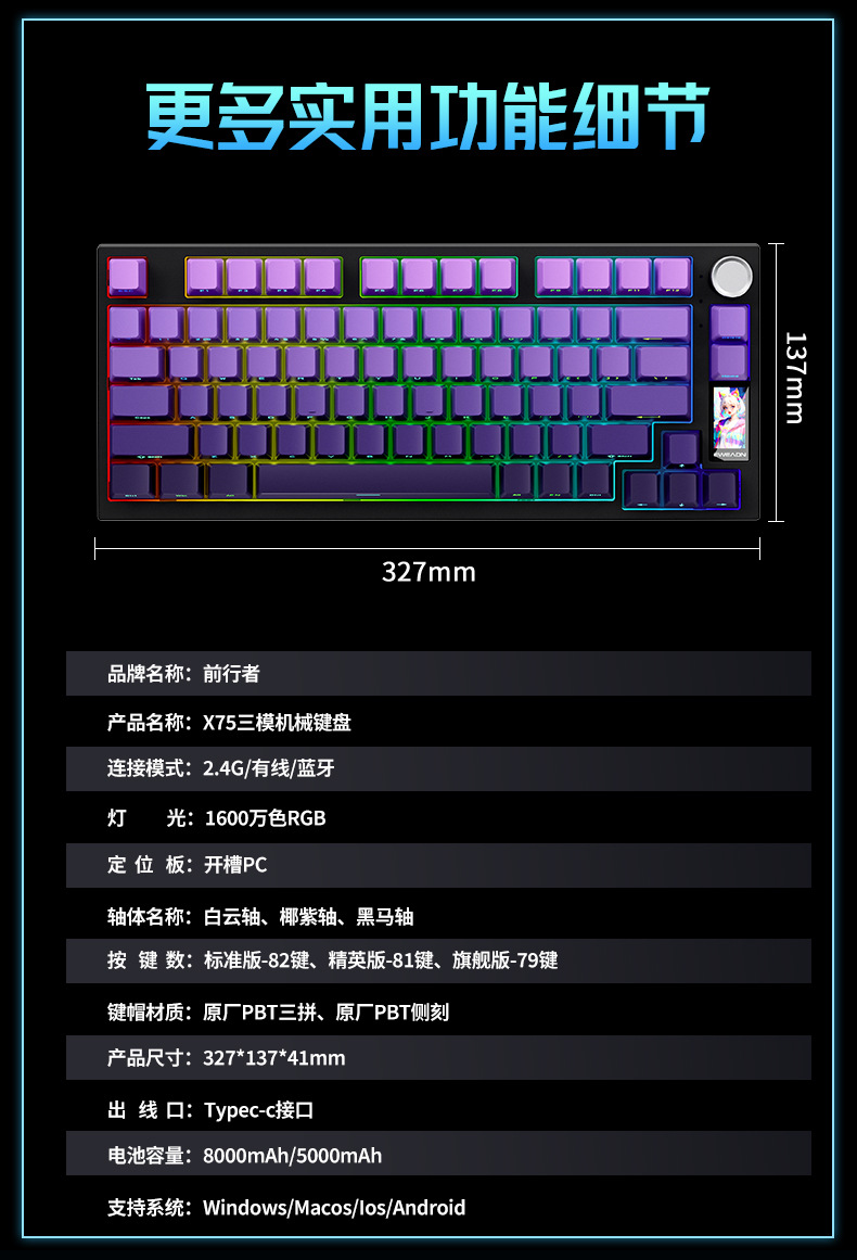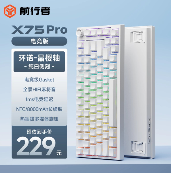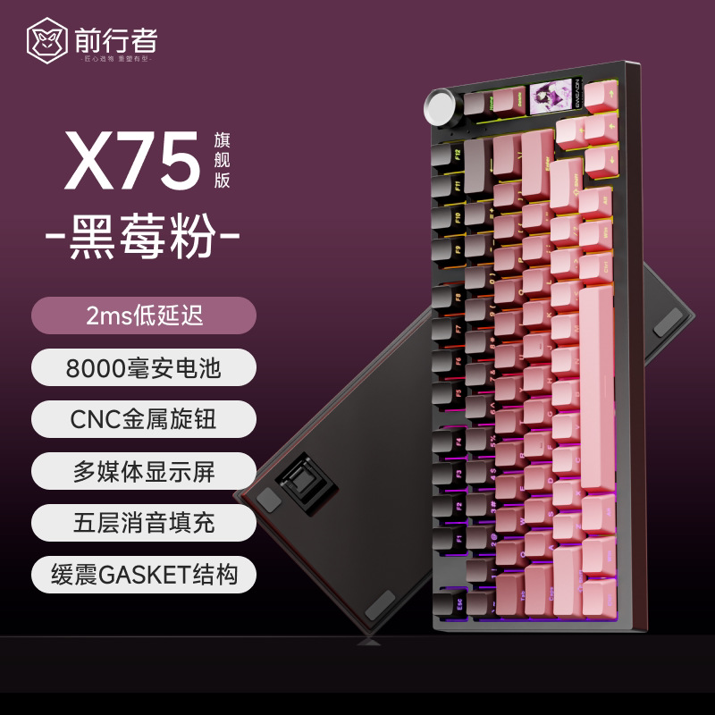Forerunner X75 음악 리듬 사이드 새겨진 기계 키보드 게임 사무실 범용 무선 블루투스 3 모드 핫 플러그스토어 가기