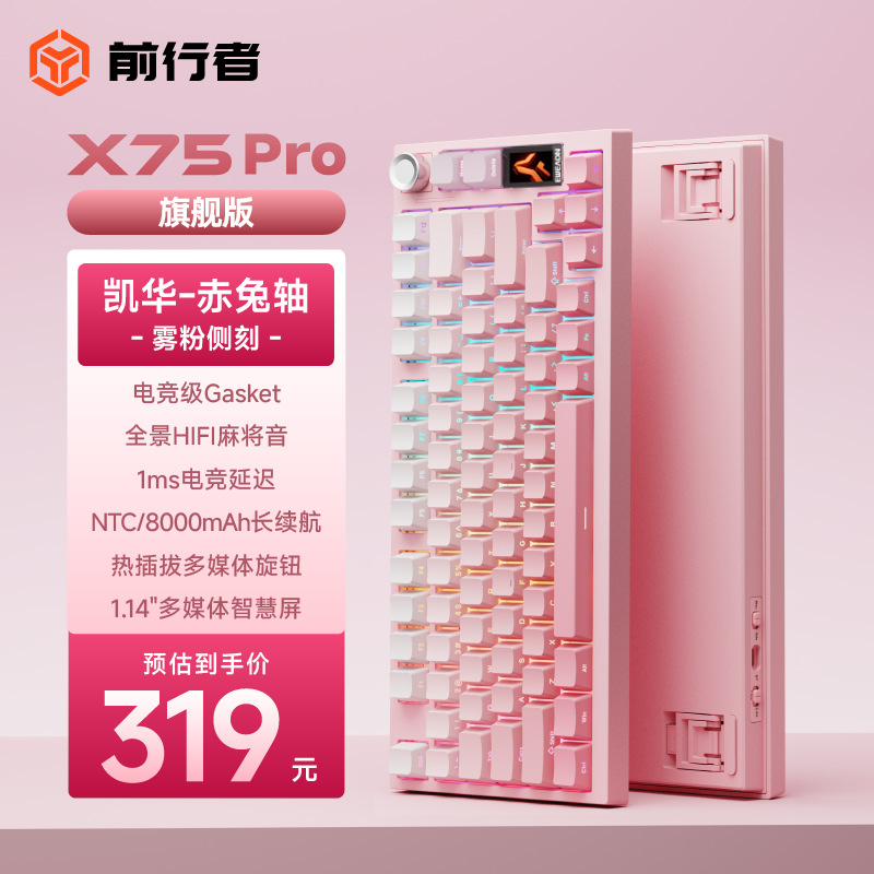 • X75Pro-미스트 파우더 그라데이션 측면 각인 [빨간 토끼 축] 8000mAh (손잡이 + 컬러 스크린 포함)