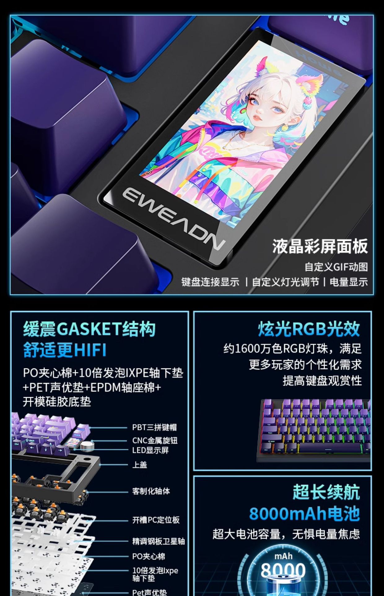 • 블랙베리 핑크 측면 각인 - 다크호스 축 - 3가지 모드 - 8000mAh 플래그십 버전