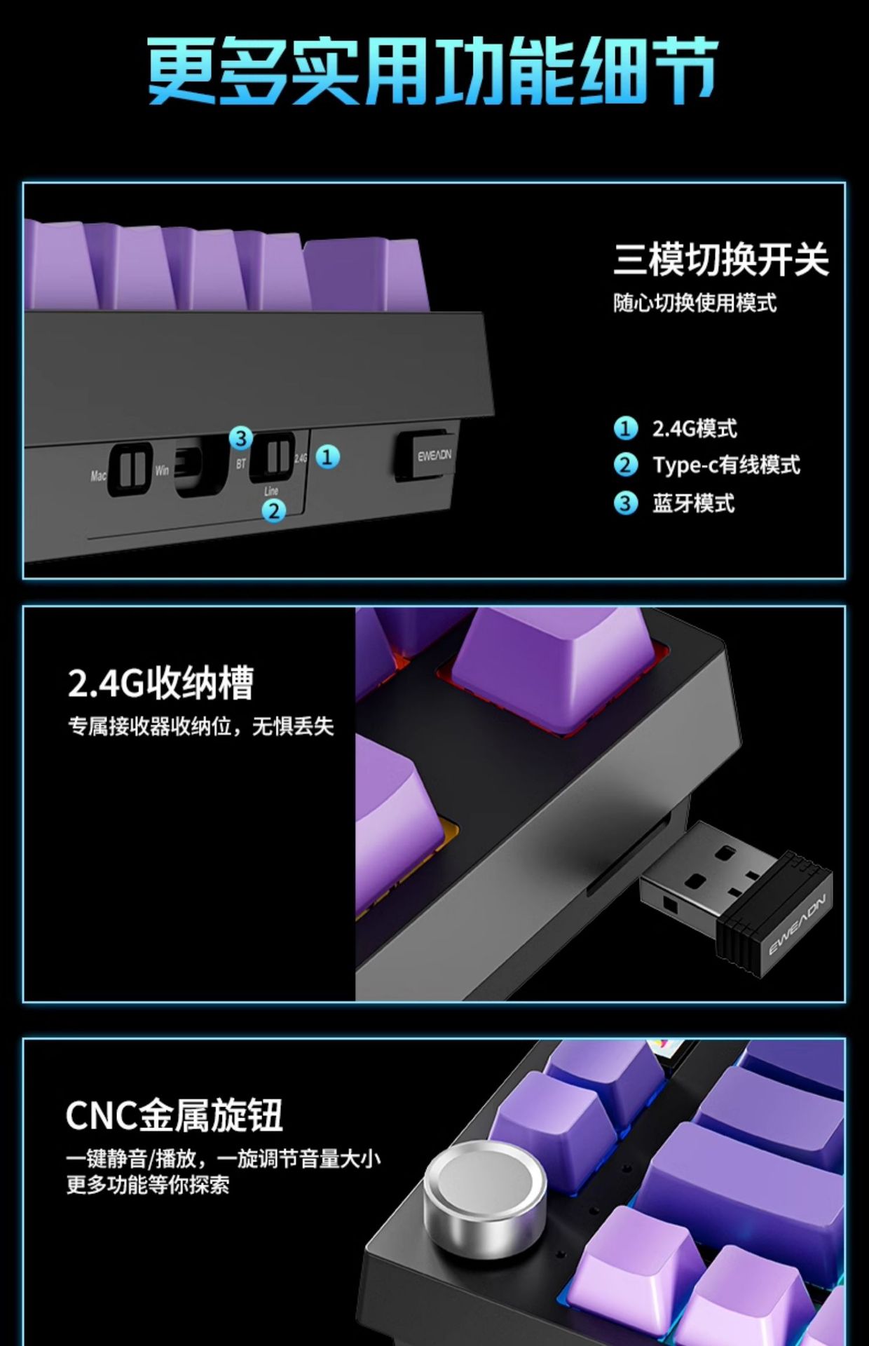 Forerunner X75 음악 리듬 사이드 새겨진 기계 키보드 게임 사무실 범용 무선 블루투스 3 모드 핫 플러그