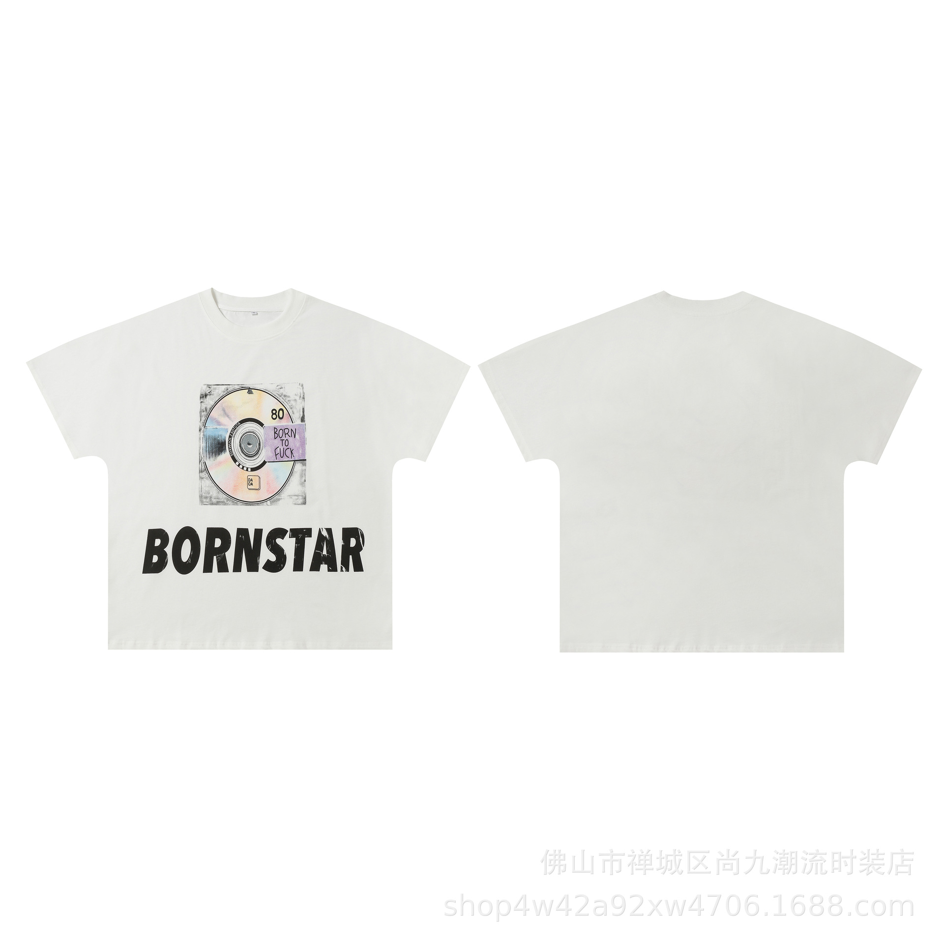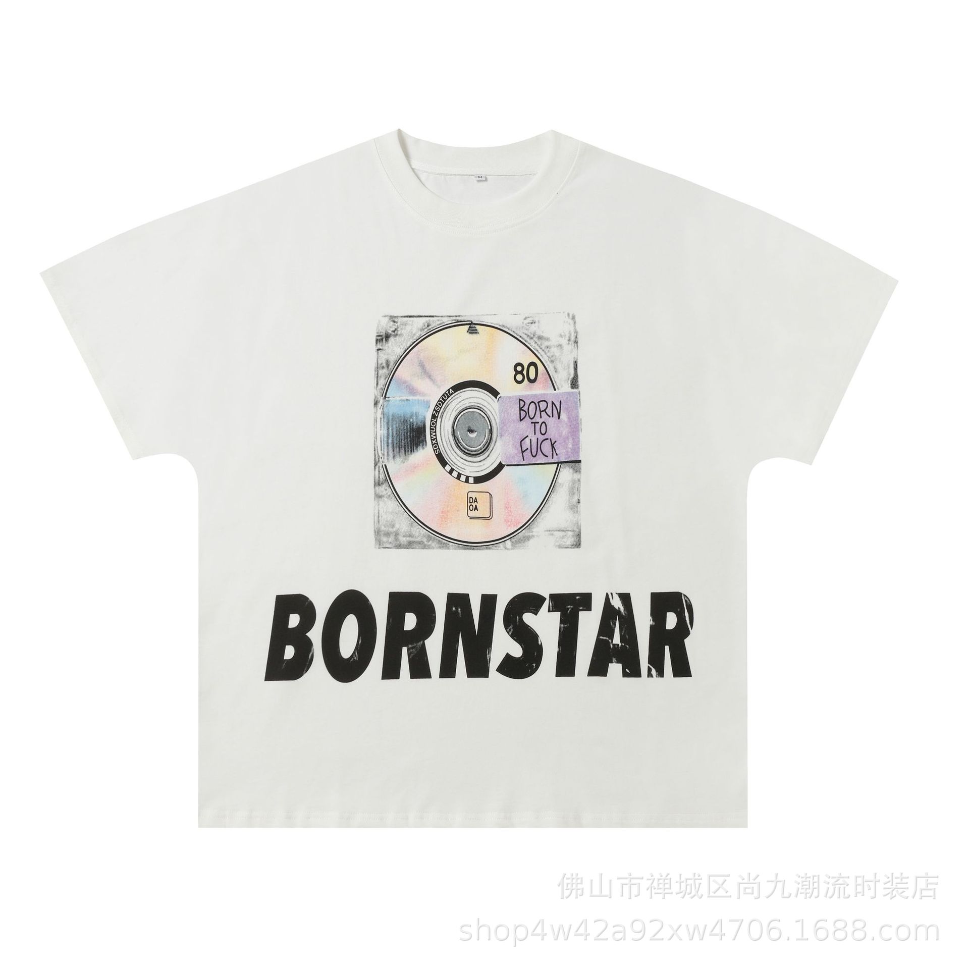 국경 간 공급 2025 봄 신입 라미네이트 디자인 인쇄 된 편지 남성과 여성의 만화 짧은 소매 스타스토어 가기