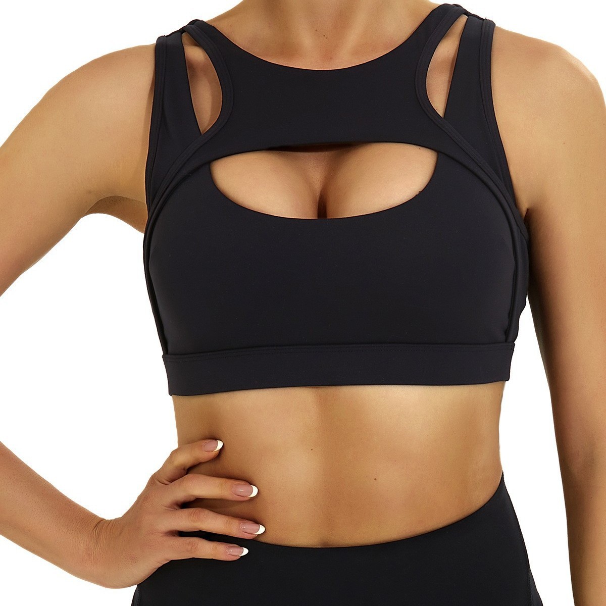 2024 유럽과 미국의 큰 가슴 충격 방지 스포츠 속옷 여성 요가 브래지어 피트니스 스포츠 조끼 할로우 요가 속옷