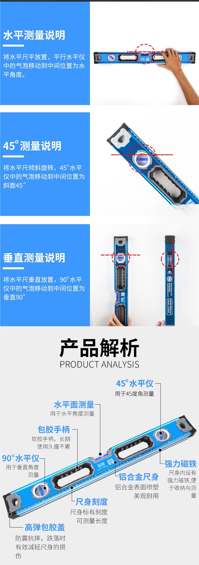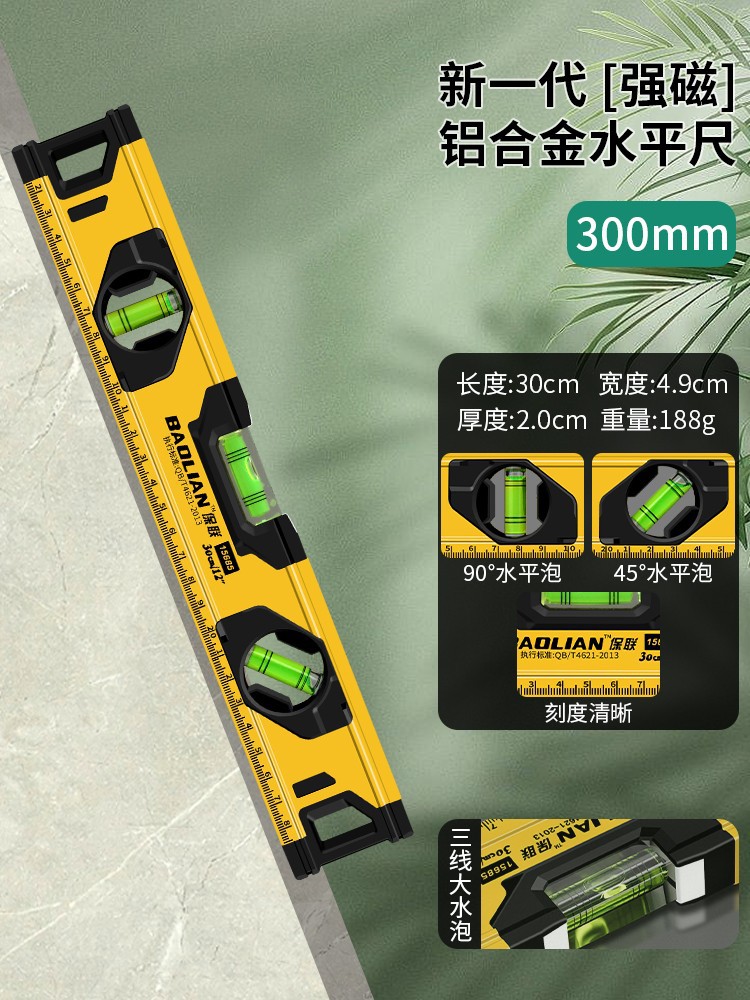 레벨 통치자 높은 정밀도 평면 물 통치자 팬 작은 알루미늄 합금 고체 낙하 방지 균형 도구 강한 자기 가구스토어 가기