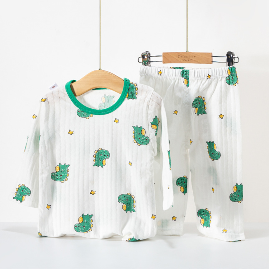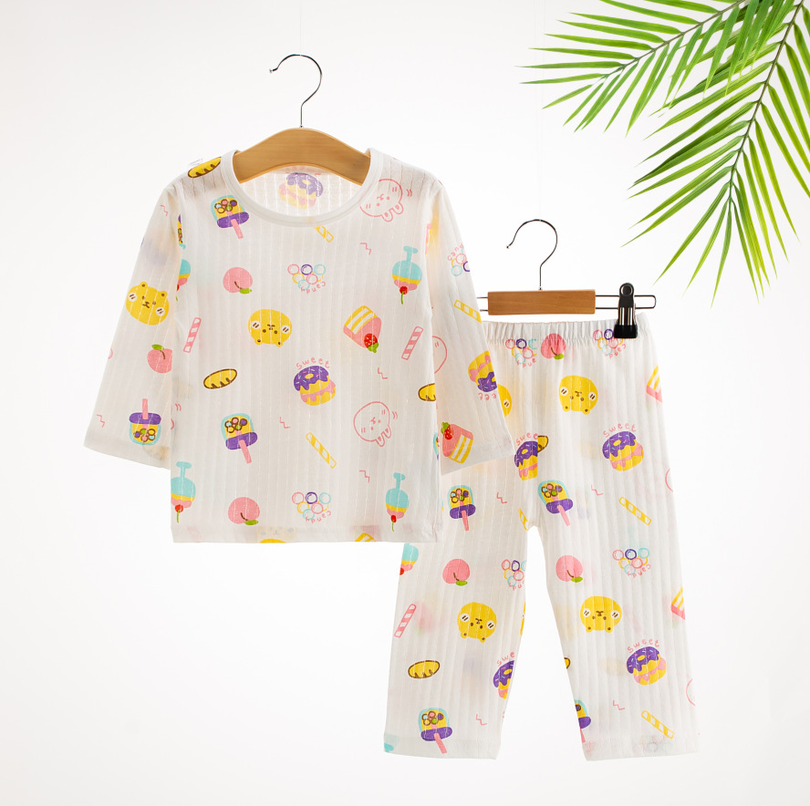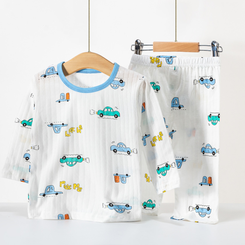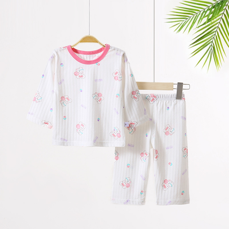 어린이 면화 세트 여름 새로운 아기 7 점 소매 홈 의류 소년 소녀를위한 잠옷 얇은 에어컨 옷 도매스토어 가기