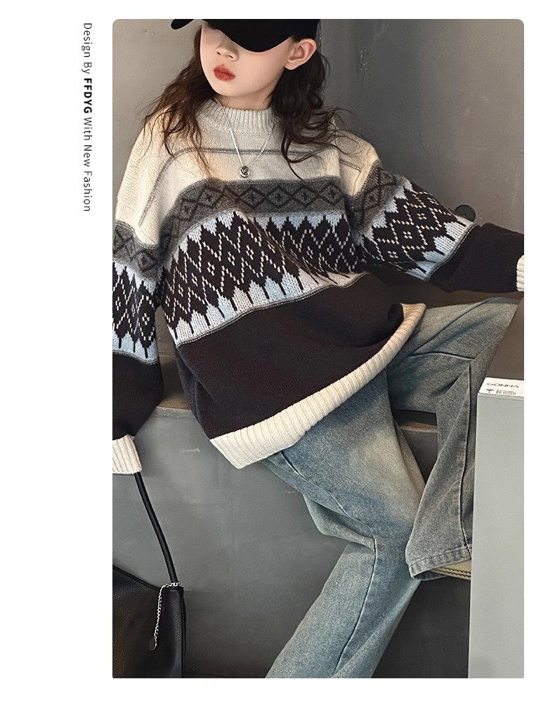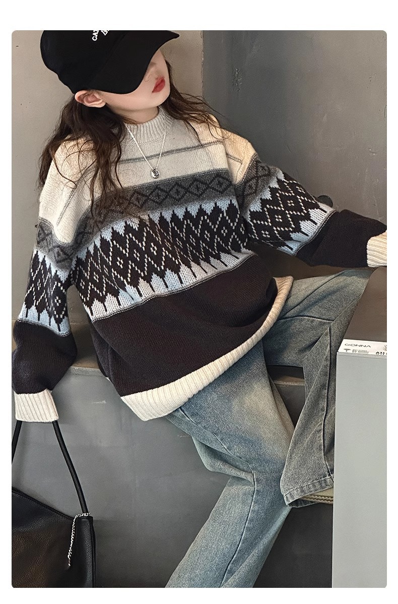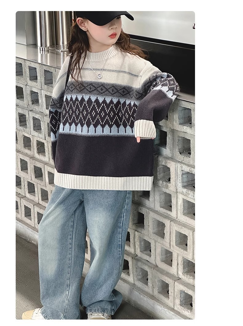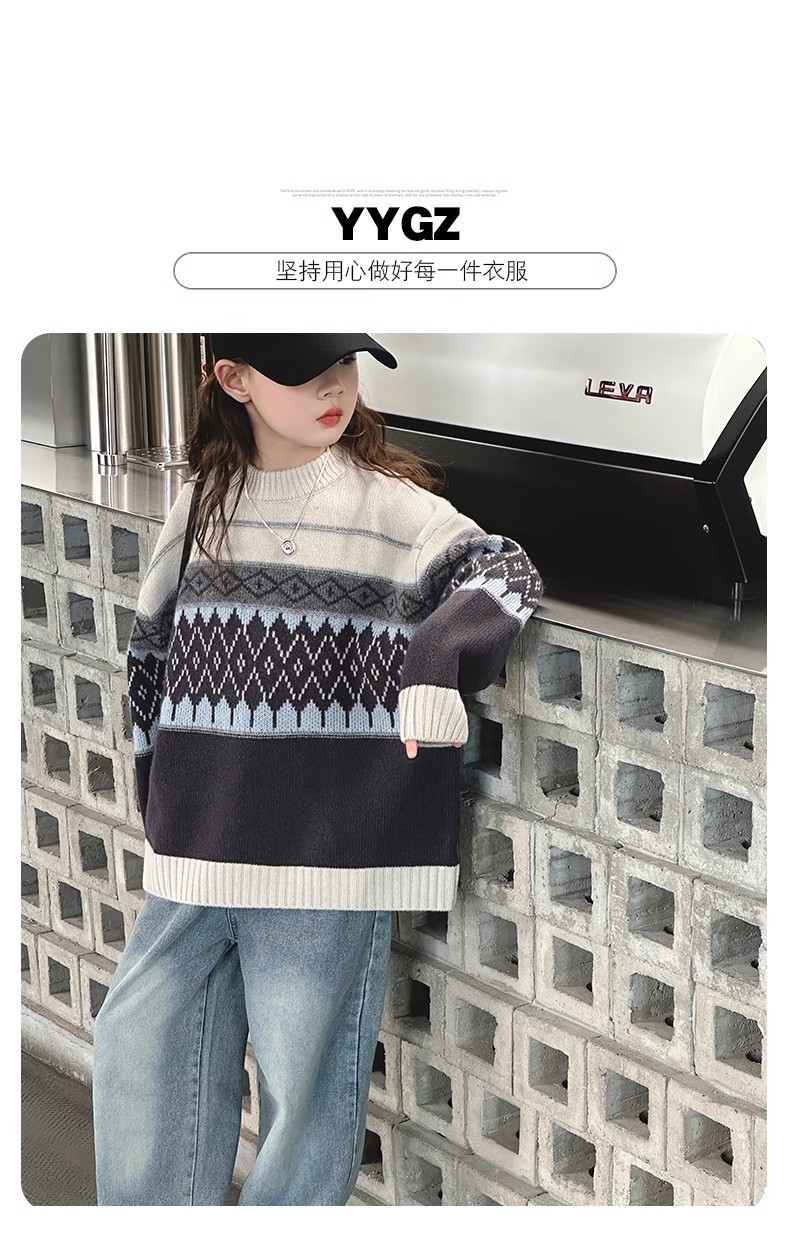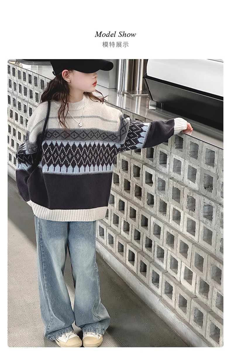 소녀 스웨터 봄과 가을 2024 새로운 한국 스타일 어린이 풀오버 다이아몬드 니트 스웨터 소녀의 큰 소년 가을과 겨울베이스 셔츠스토어 가기