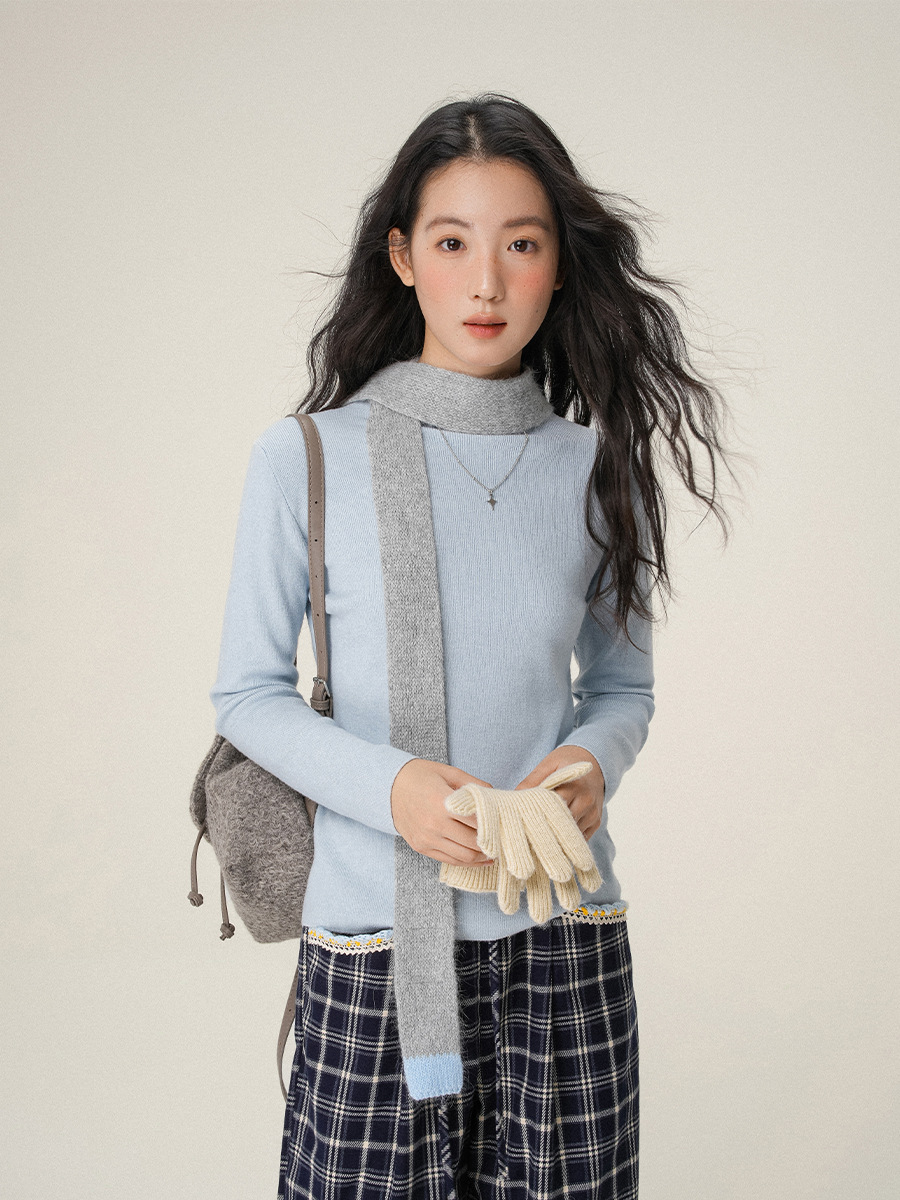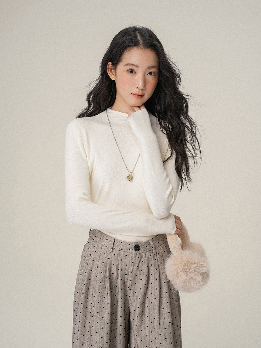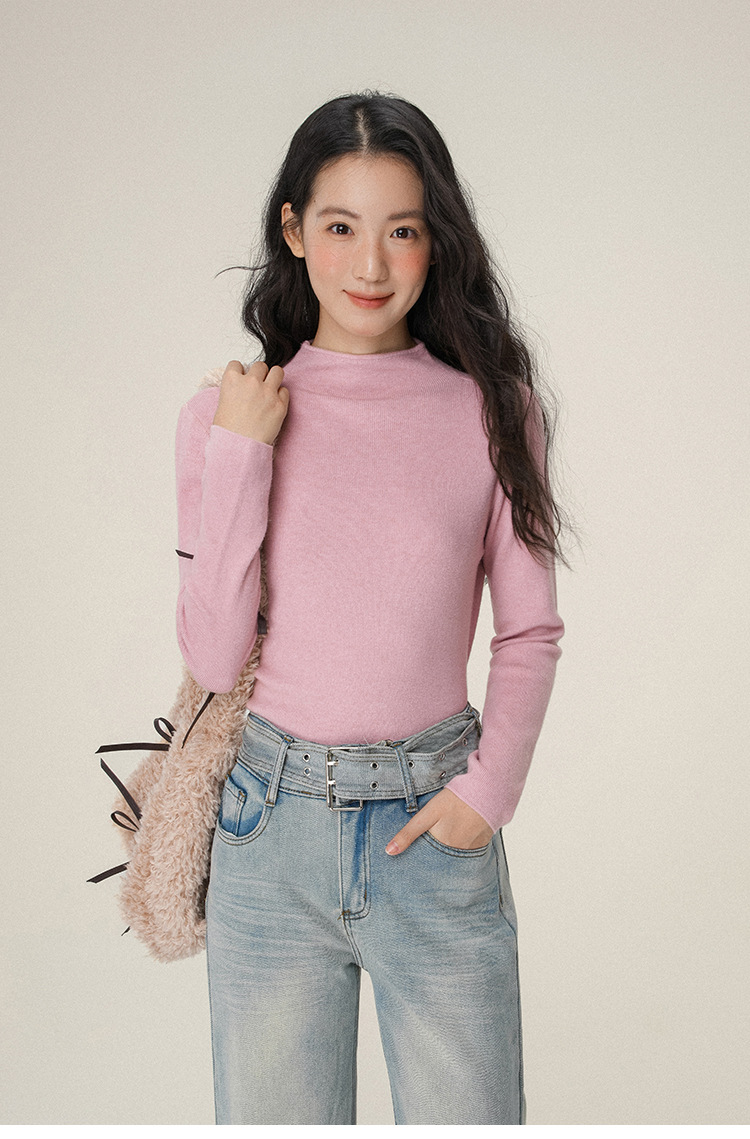 지유 하프 터틀넥 긴팔 부드러운 니트 이너웨어 여성용 가을 겨울 정장 이너 슬림핏 보온 상의