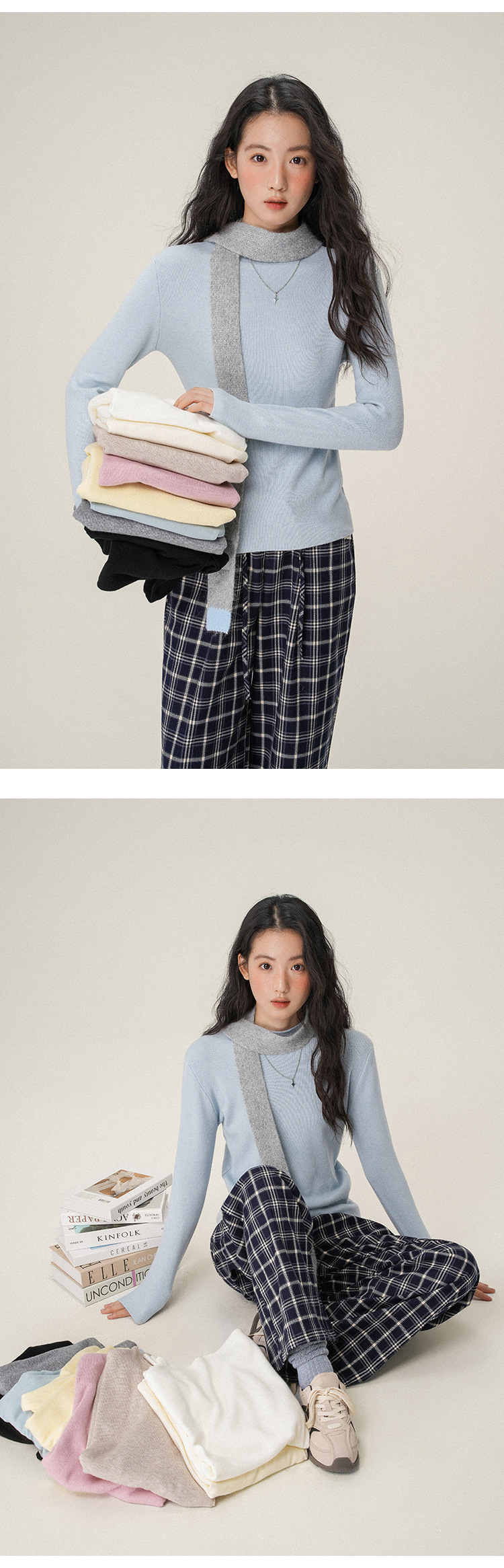 지유 하프 터틀넥 긴팔 부드러운 니트 이너웨어 여성용 가을 겨울 정장 이너 슬림핏 보온 상의스토어 가기