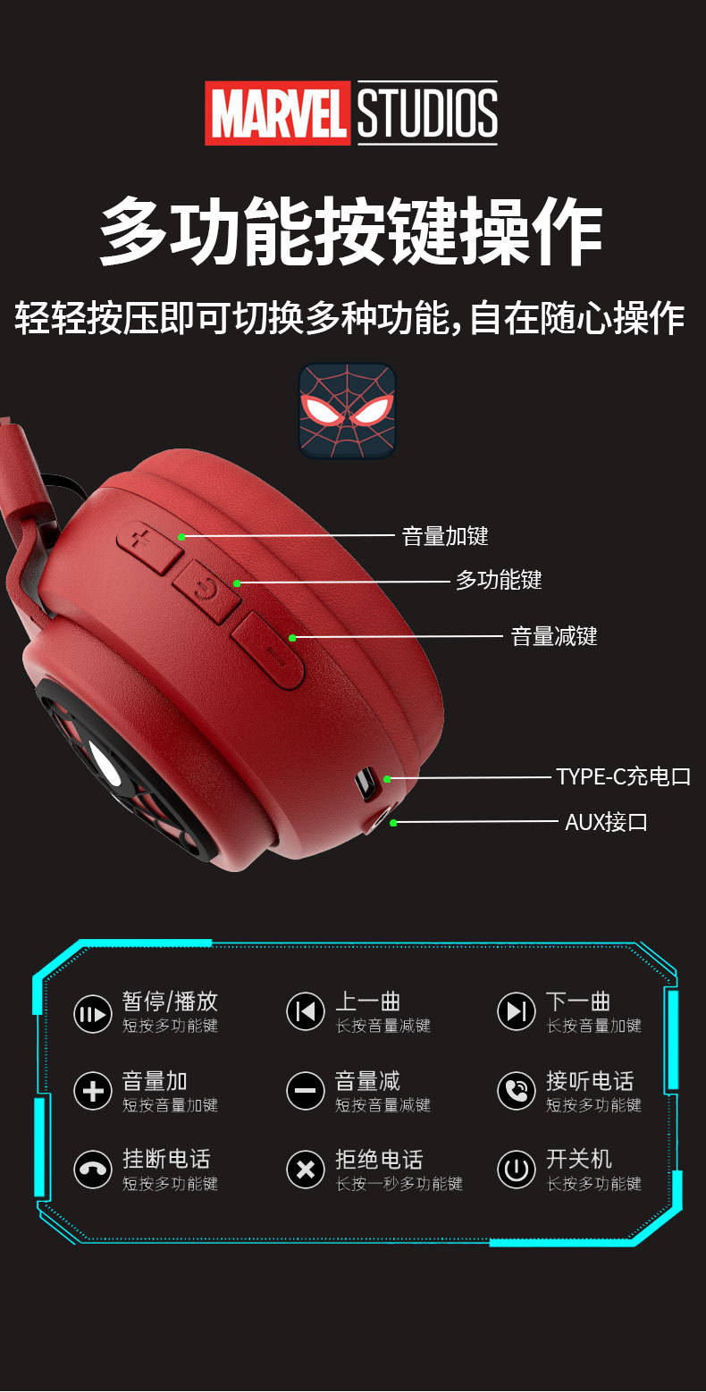 스파이더맨 X3 어린이용 창의적인 슈퍼맨 스파이더맨 헤드셋 블루투스 이어폰 e스포츠 저지연 무선스토어 가기