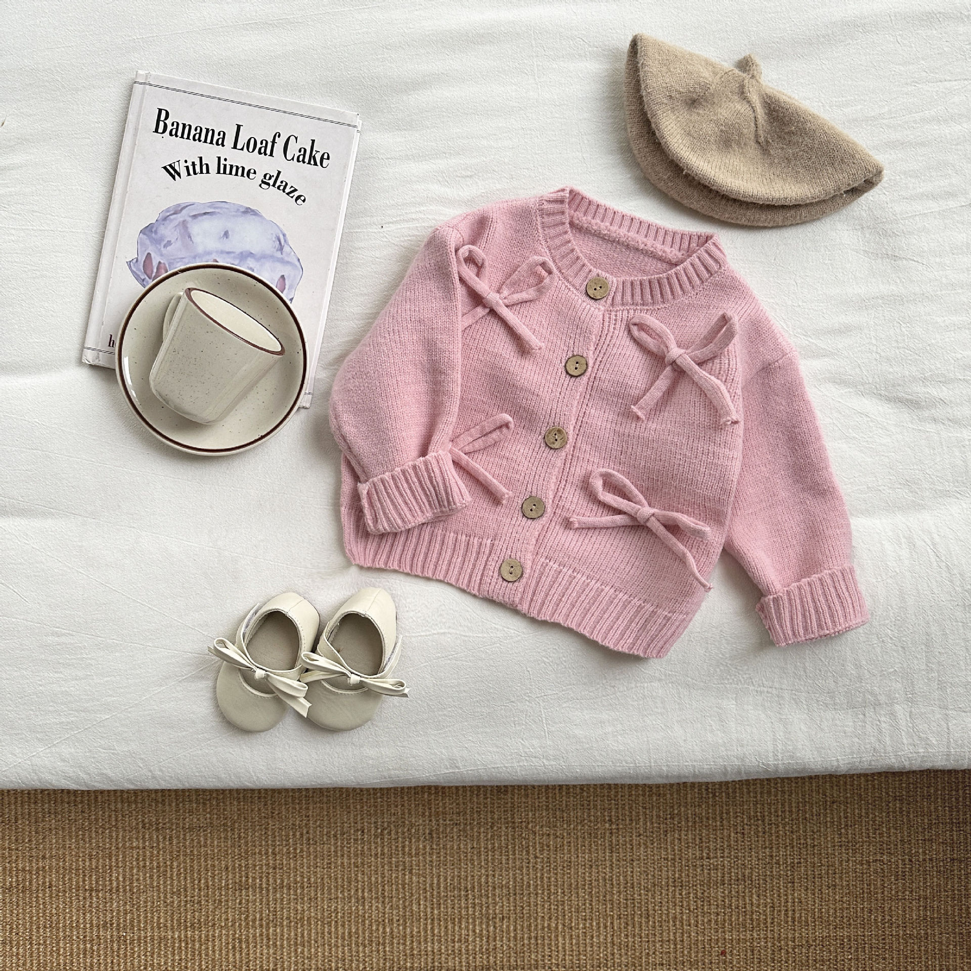 여자 가을과 겨울 니트 카디건 서양식 아기 귀여운 활 스웨터 아기 따뜻한 올 매치 코트 봄
