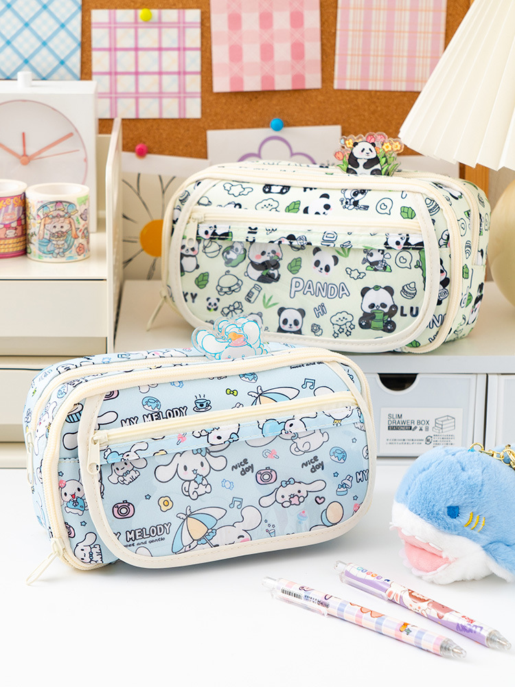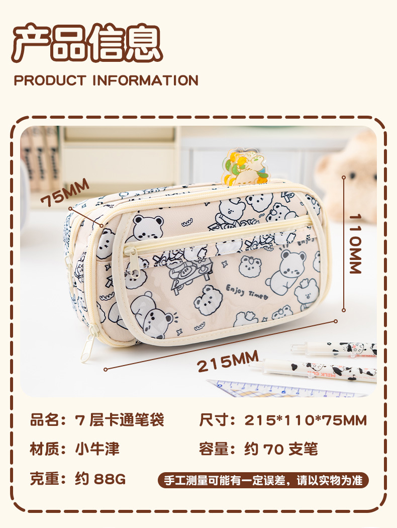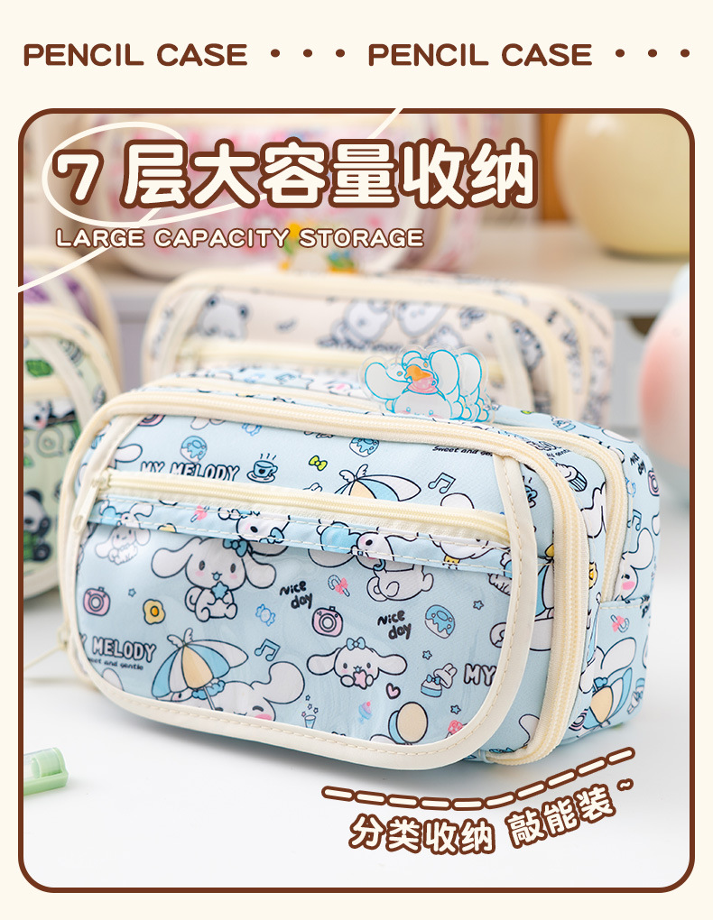 중학교 고등학생을위한 7 층 대용량 만화 인쇄 높은 색 가치 연필 케이스 다기능 보관 가방