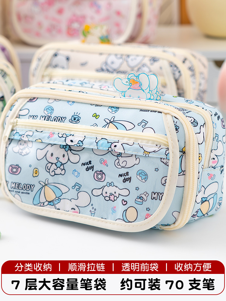 중학교 고등학생을위한 7 층 대용량 만화 인쇄 높은 색 가치 연필 케이스 다기능 보관 가방스토어 가기