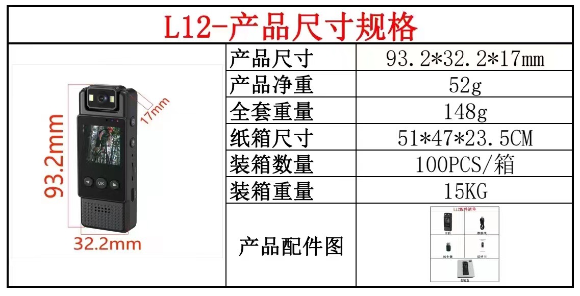 L12 직접 녹화 HD 카메라 DV 비디오 녹화 회의 스포츠 장면 법 집행 레코더 야간 영상 백 클립 핸드 헬드