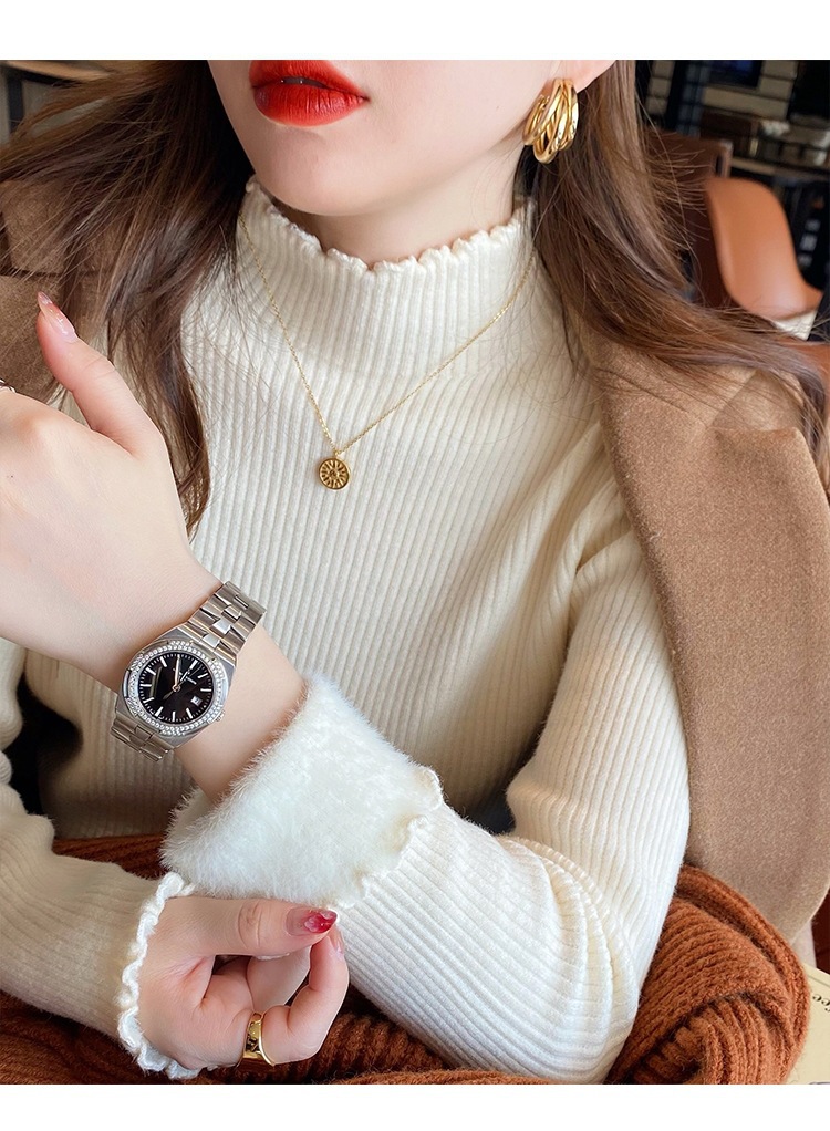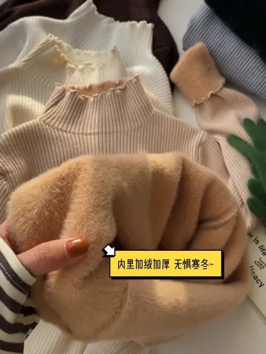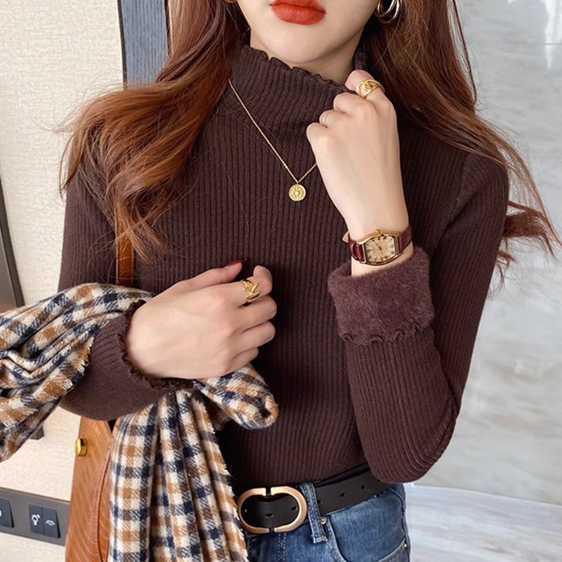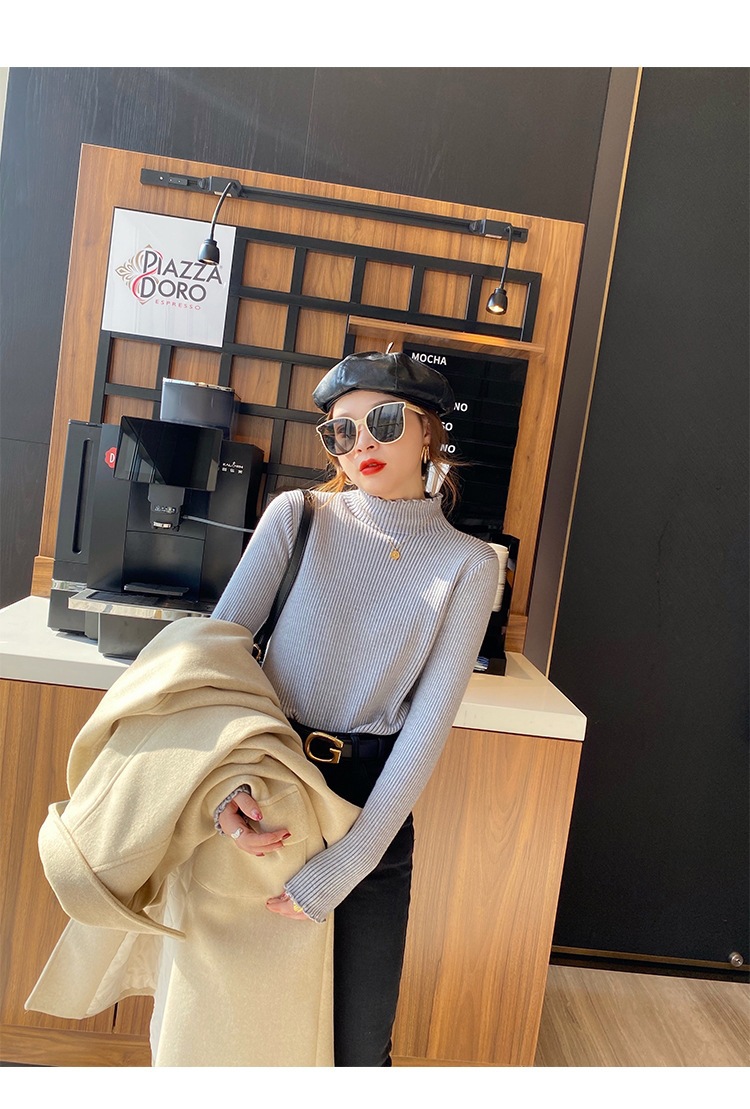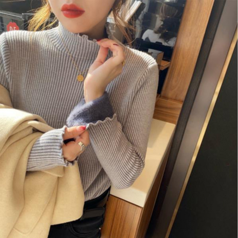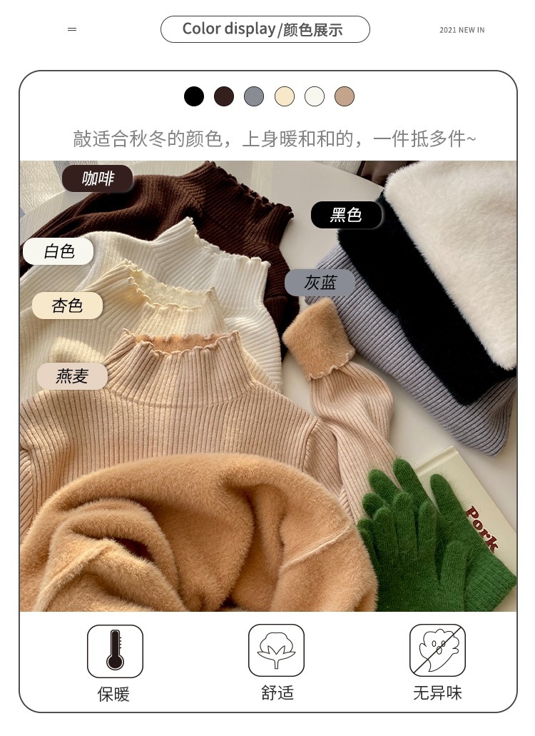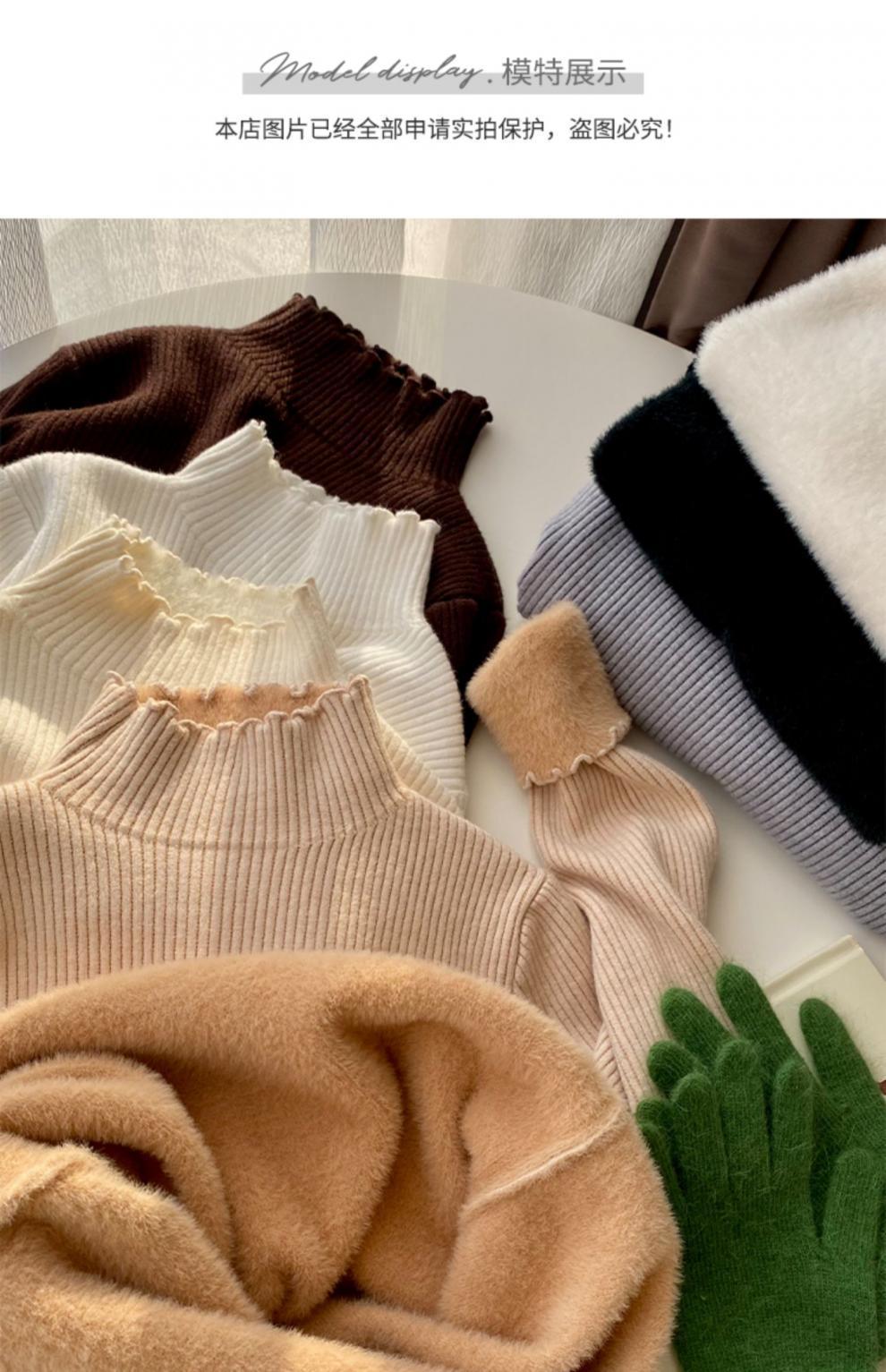 기모 반 높이 목 니트 스웨터 여성의 겨울 탄성 타이트 소프트 왁스 두꺼운 따뜻한 귀 가장자리베이스 스웨터 트렌디스토어 가기