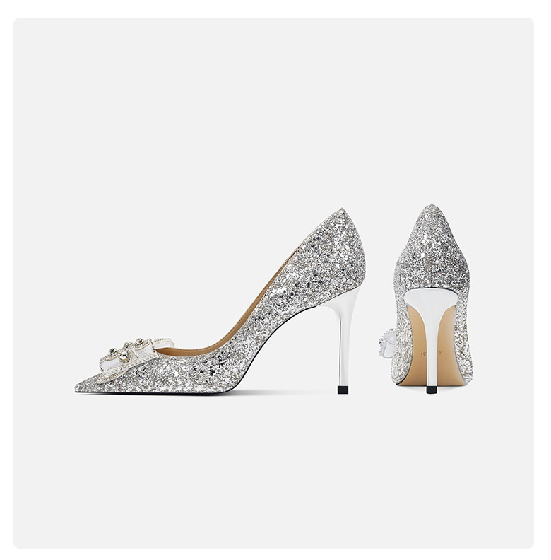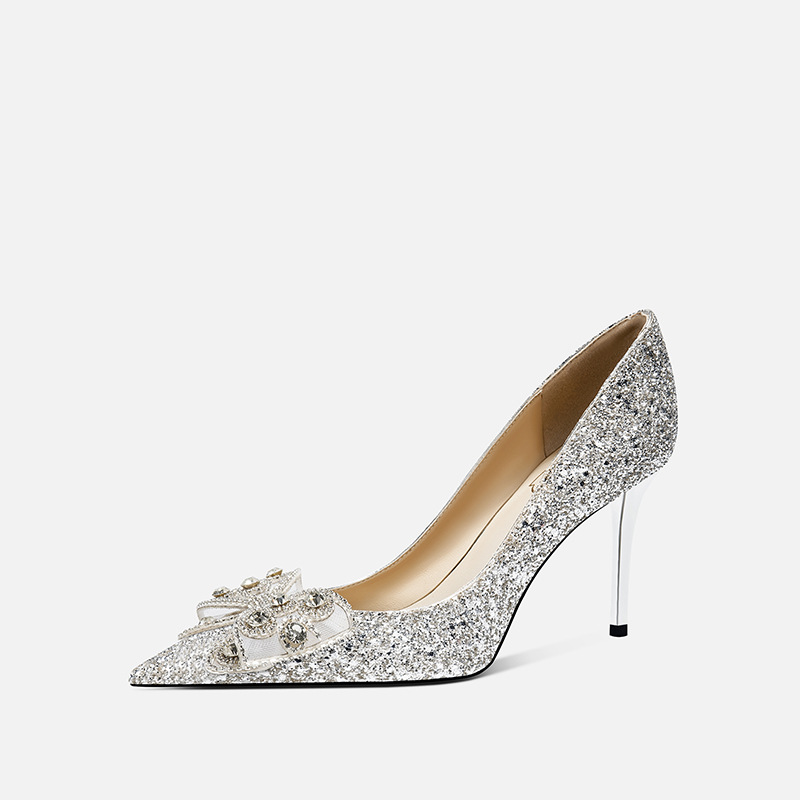708-A28 얇은 플래시 하이힐 웨딩 신발 웨딩 메인 원사 힐 신발 활 뾰족한 디자인 하이힐 들러리 신발