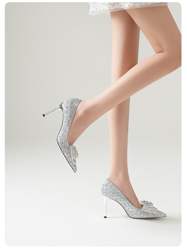 708-A28 얇은 플래시 하이힐 웨딩 신발 웨딩 메인 원사 힐 신발 활 뾰족한 디자인 하이힐 들러리 신발스토어 가기