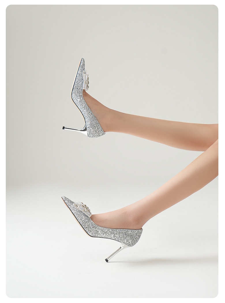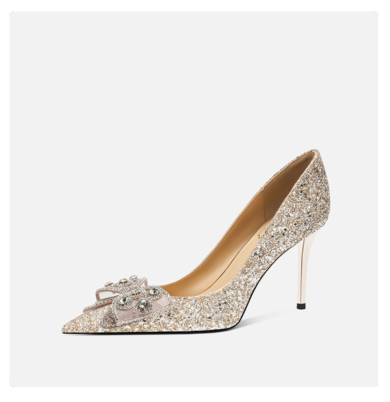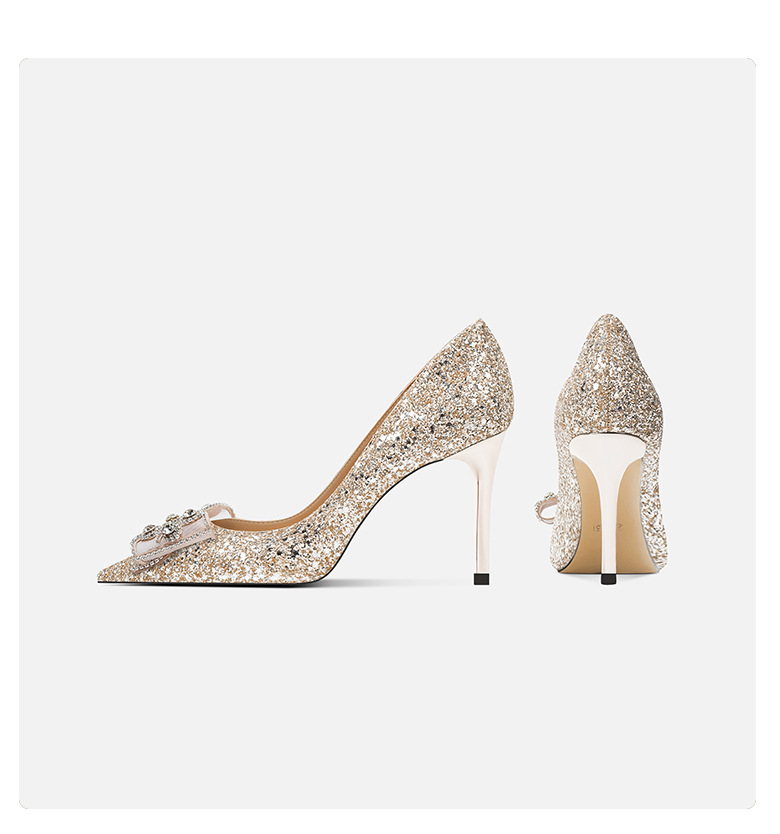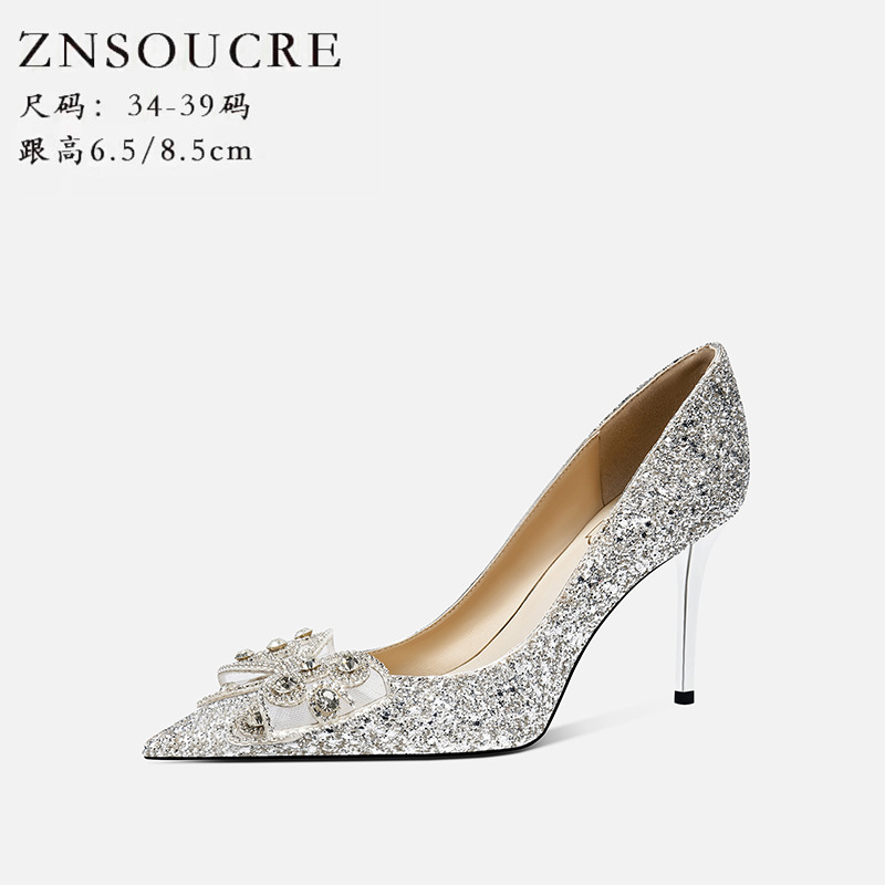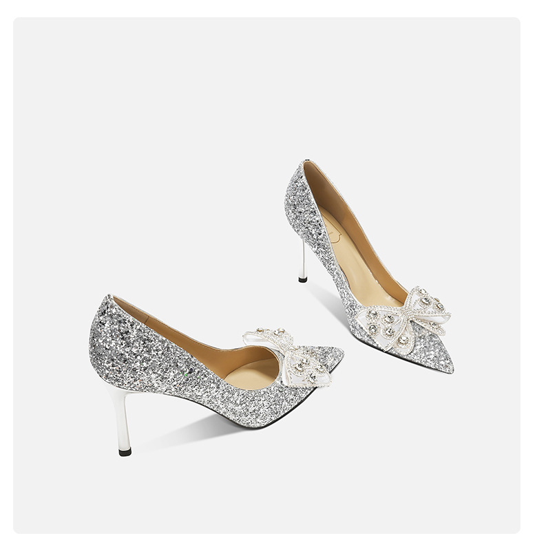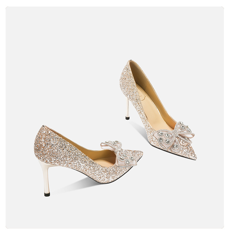 708-A28 모조 다이아몬드 활 장식 하이힐 우아한 여성 동반자 신발 결혼식 신부 들러리 하이힐 뾰족한 디자인 감각스토어 가기