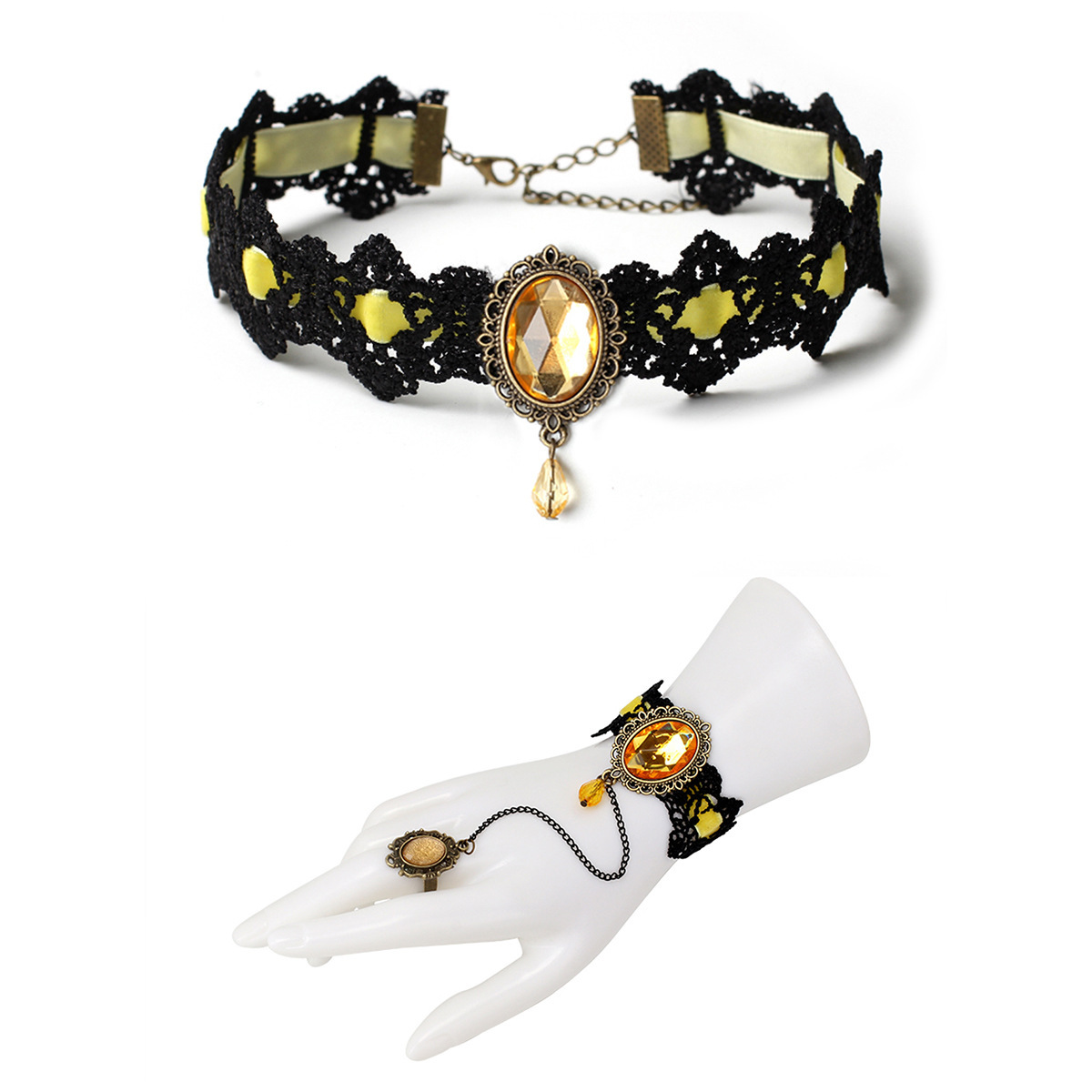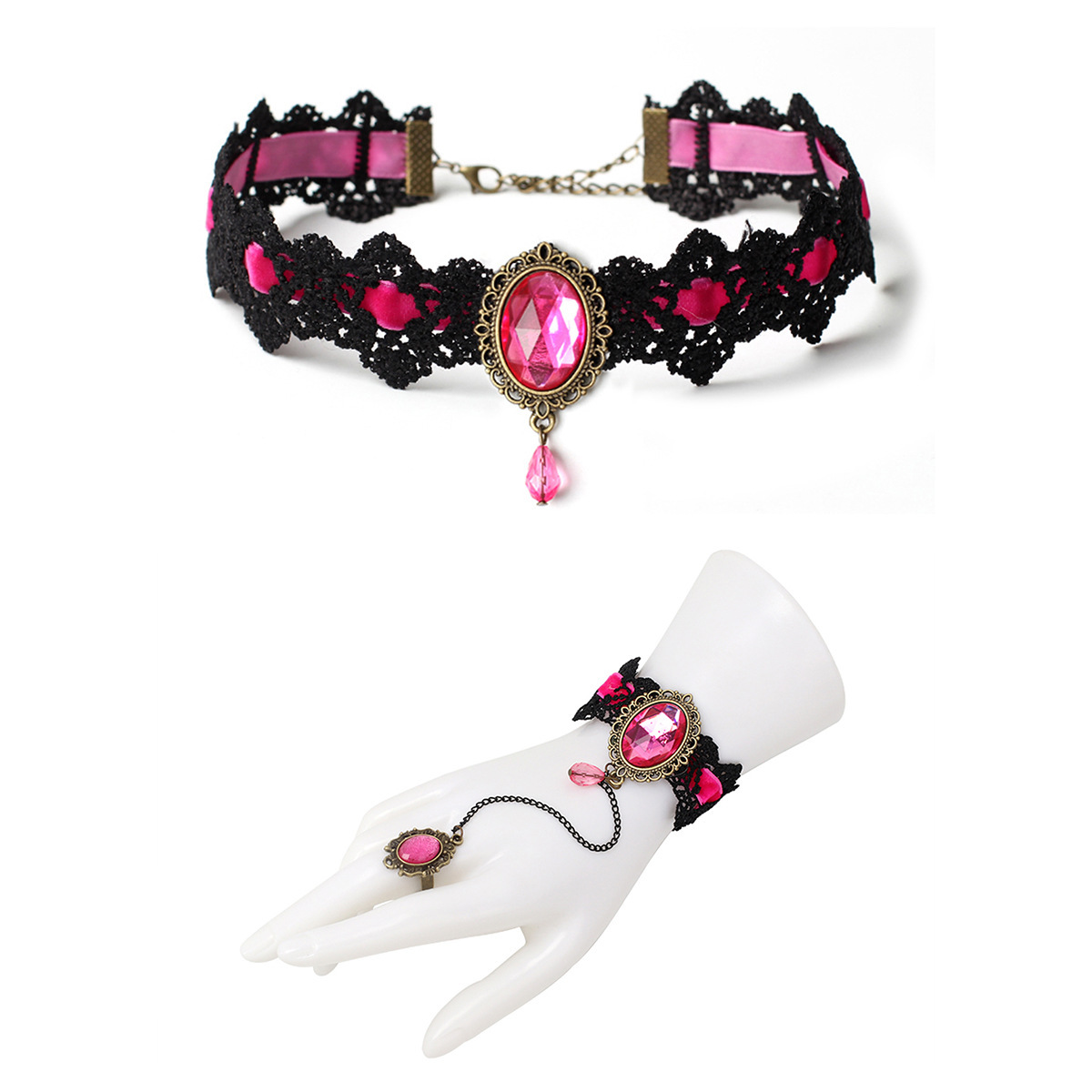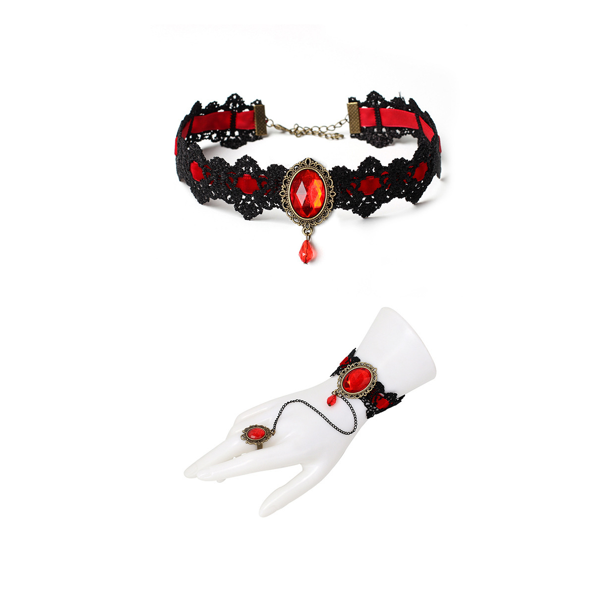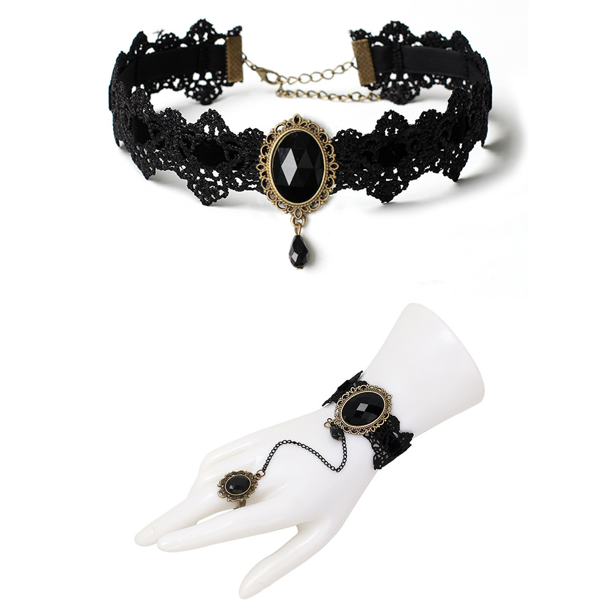 유럽과 미국의 국경 고딕 다크 스타일 레이스 목걸이 손가락 팔찌 조합 성격 디자인 창조적 인 보석스토어 가기