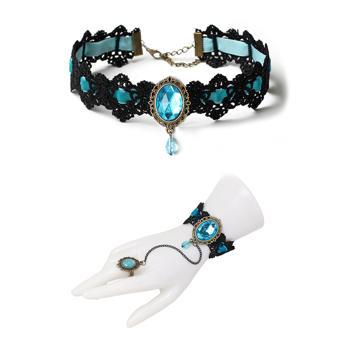 유럽과 미국의 국경 고딕 다크 스타일 레이스 목걸이 손가락 팔찌 조합 성격 디자인 창조적 인 보석