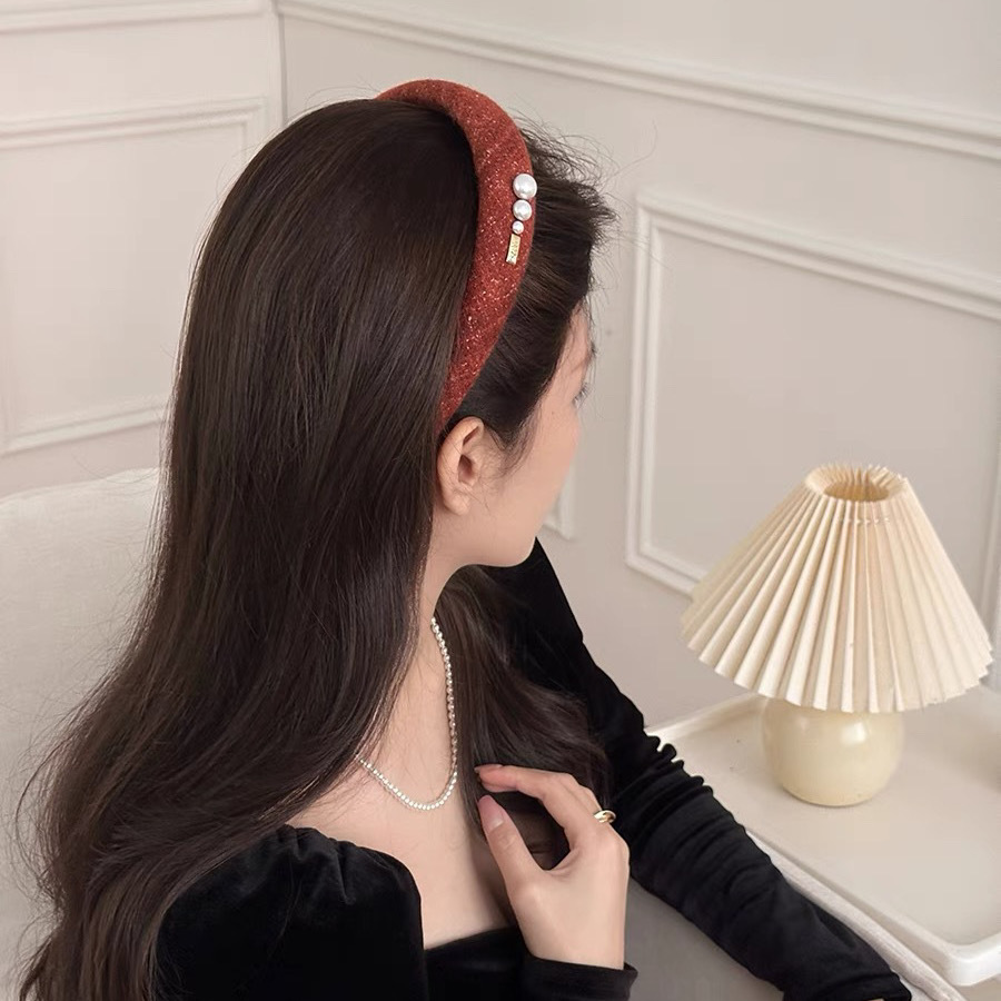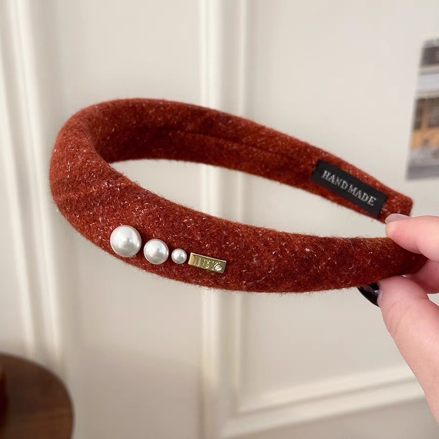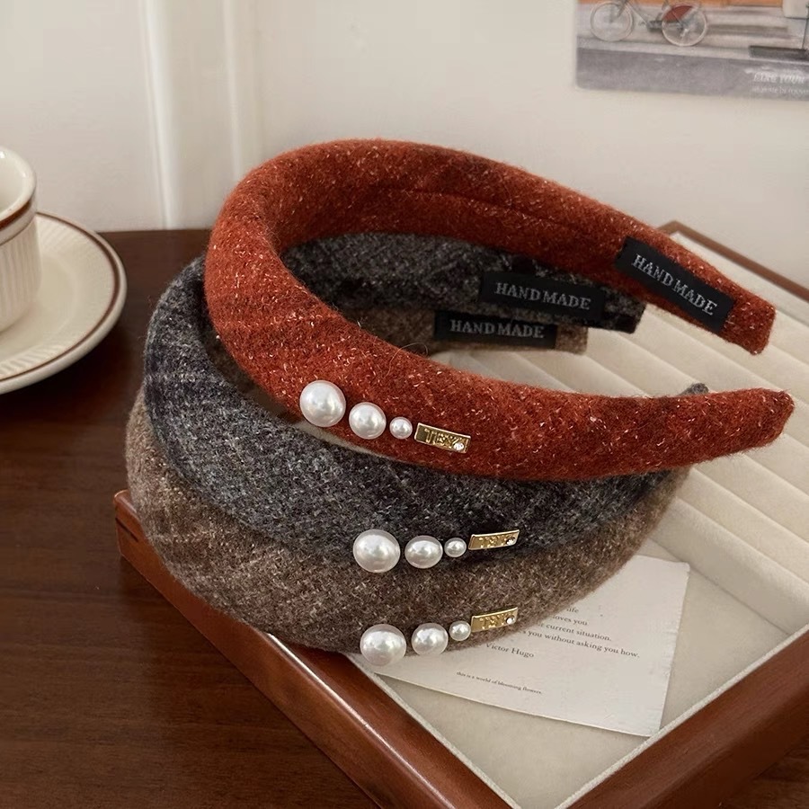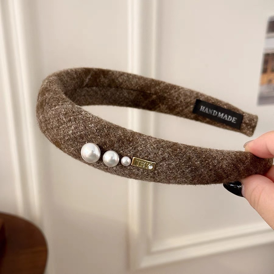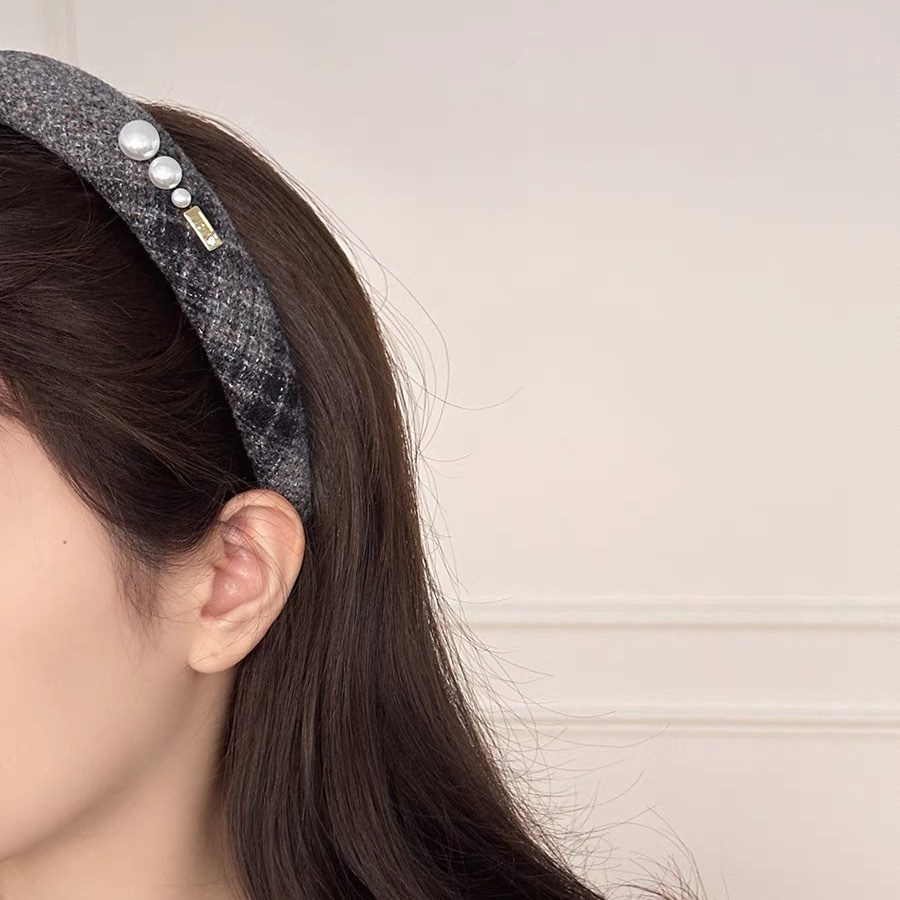 가을과 겨울 격자 무늬 모직 진주 머리띠 여성 레트로 2024 새로운 헤어 압력 머리띠 높은 크랜얼 탑 우아한 헤어 액세서리스토어 가기
